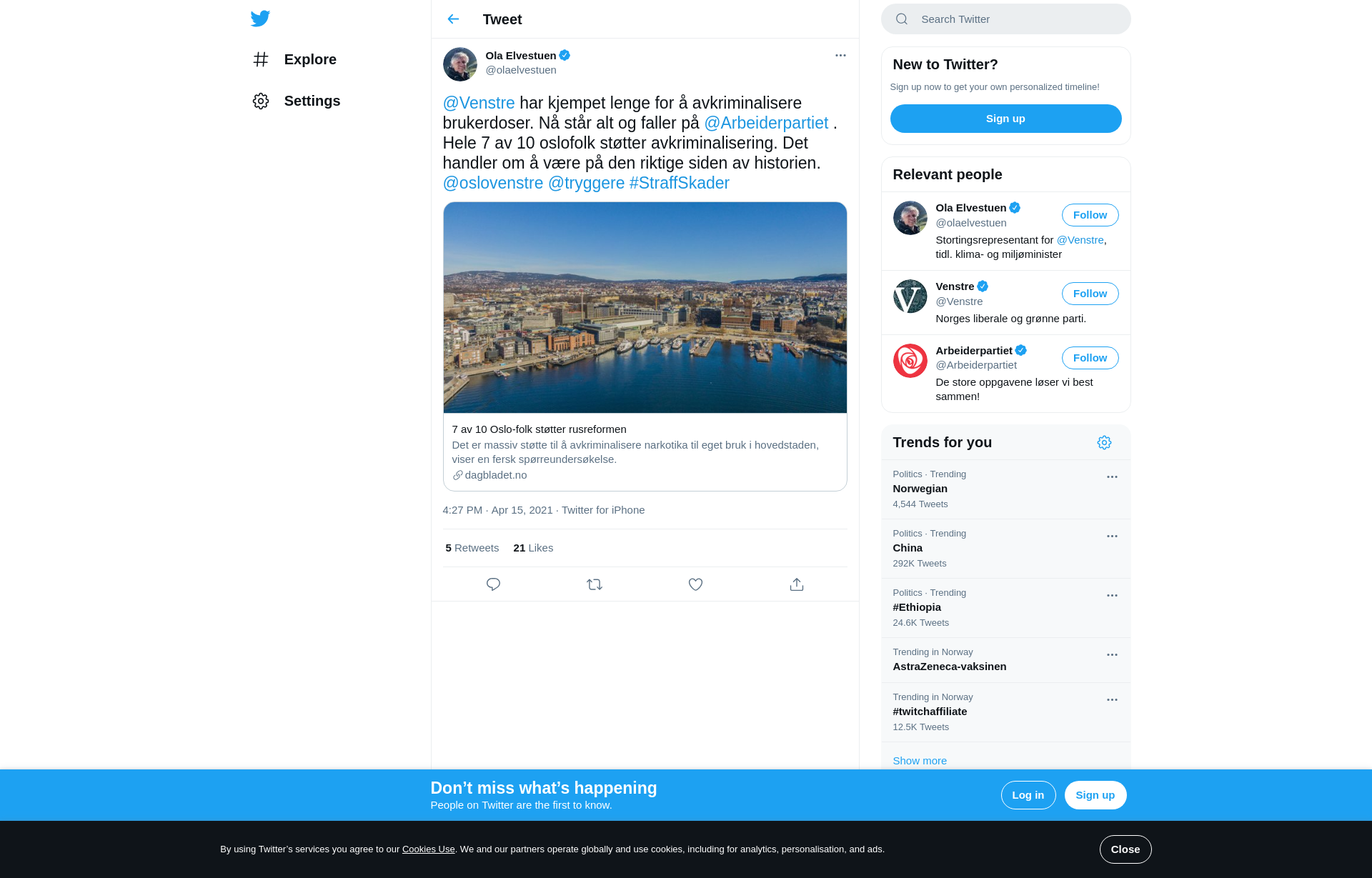 @Venstre har kjempet lenge for å avkriminalisere brukerdoser. Nå står alt og faller på @Arbeiderpartiet . Hele 7 av 10 oslofolk støtter avkriminalisering. Det handler om å være på den riktige siden av historien. @oslovenstre @tryggere #StraffSkader https://t.co/gxRiuJRIfq