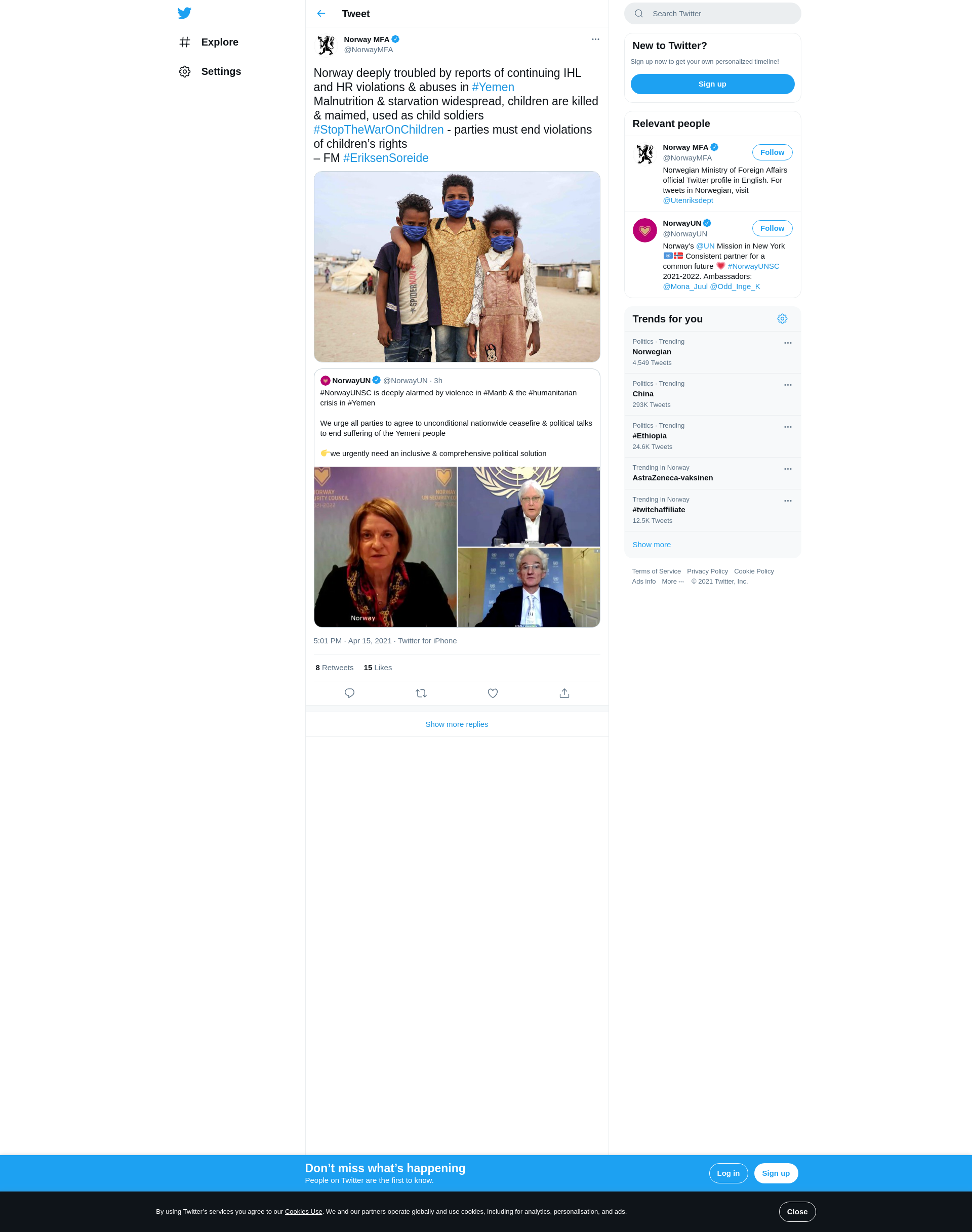 Norway deeply troubled by reports of continuing IHL and HR violations & abuses in #Yemen