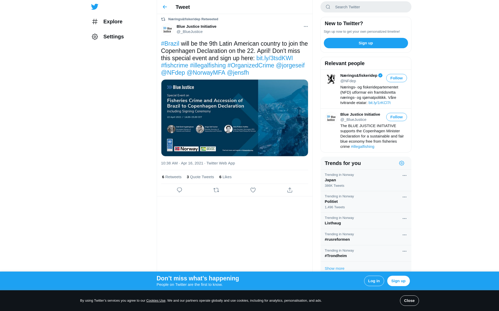 RT @_BlueJustice: #Brazil will be the 9th Latin American country to join the Copenhagen Declaration on the 22. April! Don't miss this special event and sign up here: https://t.co/3zG9htRtTz #fishcrime #illegalfishing #OrganizedCrime @jorgeseif @NFdep @NorwayMFA @jensfh https://t.co/70QDEn5jJd