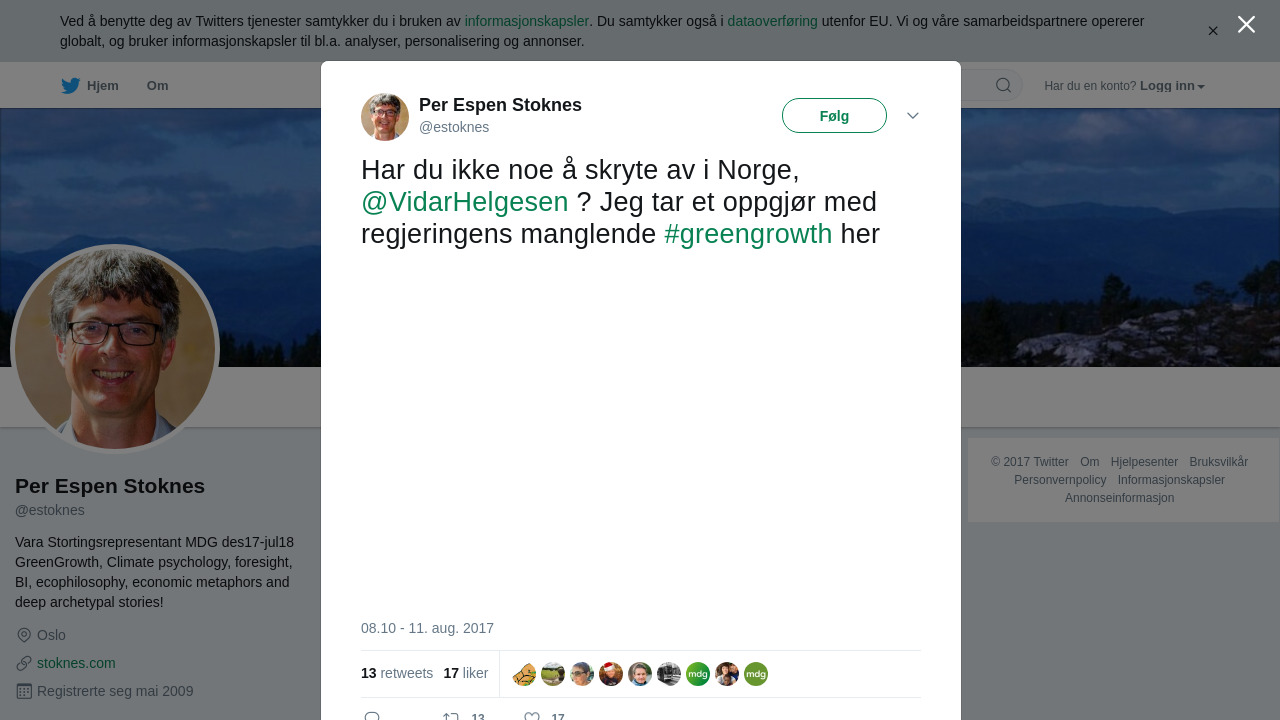 RT @estoknes: Har du ikke noe å skryte av i Norge, @VidarHelgesen ? Jeg tar et oppgjør med regjeringens manglende #greengrowth her https://t.co/g7pYIIqYeR