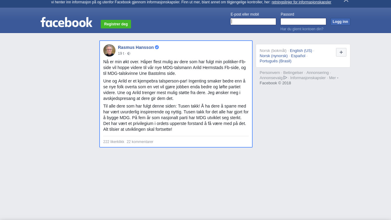 Nå er min økt over. Håper flest mulig av dere som har fulgt min politiker-Fb-side vil hoppe videre til vår nye MDG-talsmann Arild Hermstads Fb-side, og til MDG-talskvinne Une Bastolms side.