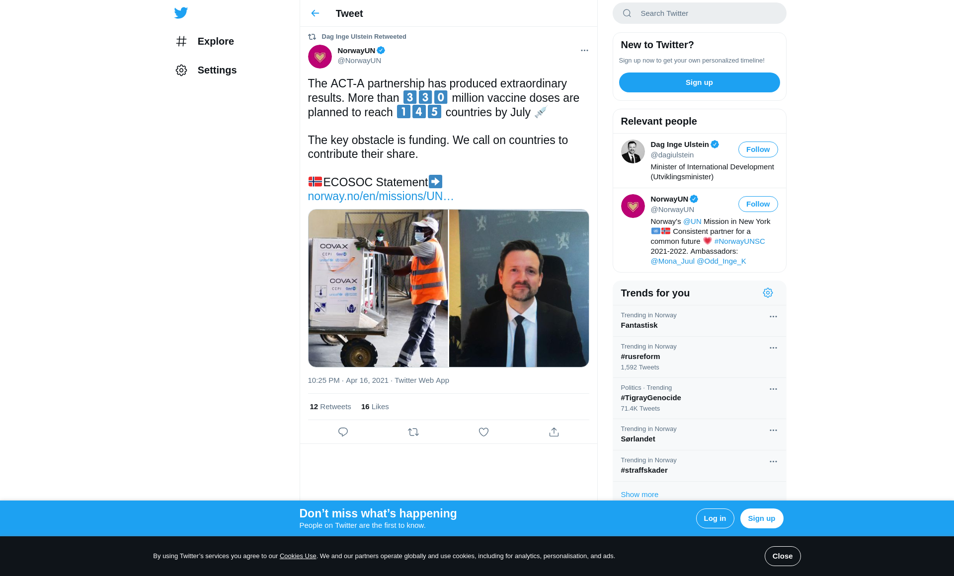 RT @NorwayUN: The ACT-A partnership has produced extraordinary results. More than 3⃣3⃣0⃣ million vaccine doses are planned to reach 1⃣4⃣5⃣ countries by July 💉
