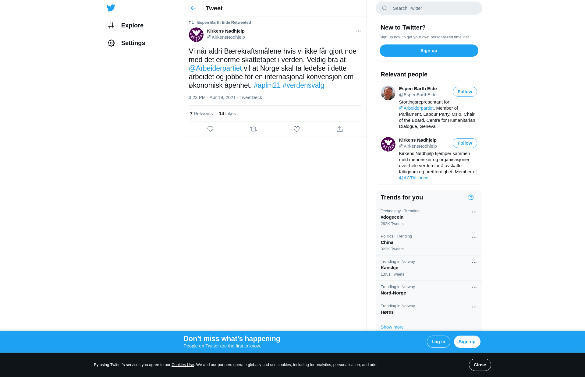 RT @KirkensNodhjelp: Vi når aldri Bærekraftsmålene hvis vi ikke får gjort noe med det enorme skattetapet i verden. Veldig bra at @Arbeiderpartiet vil at Norge skal ta ledelse i dette arbeidet og jobbe for en internasjonal konvensjon om økonomisk åpenhet. #aplm21 #verdensvalg