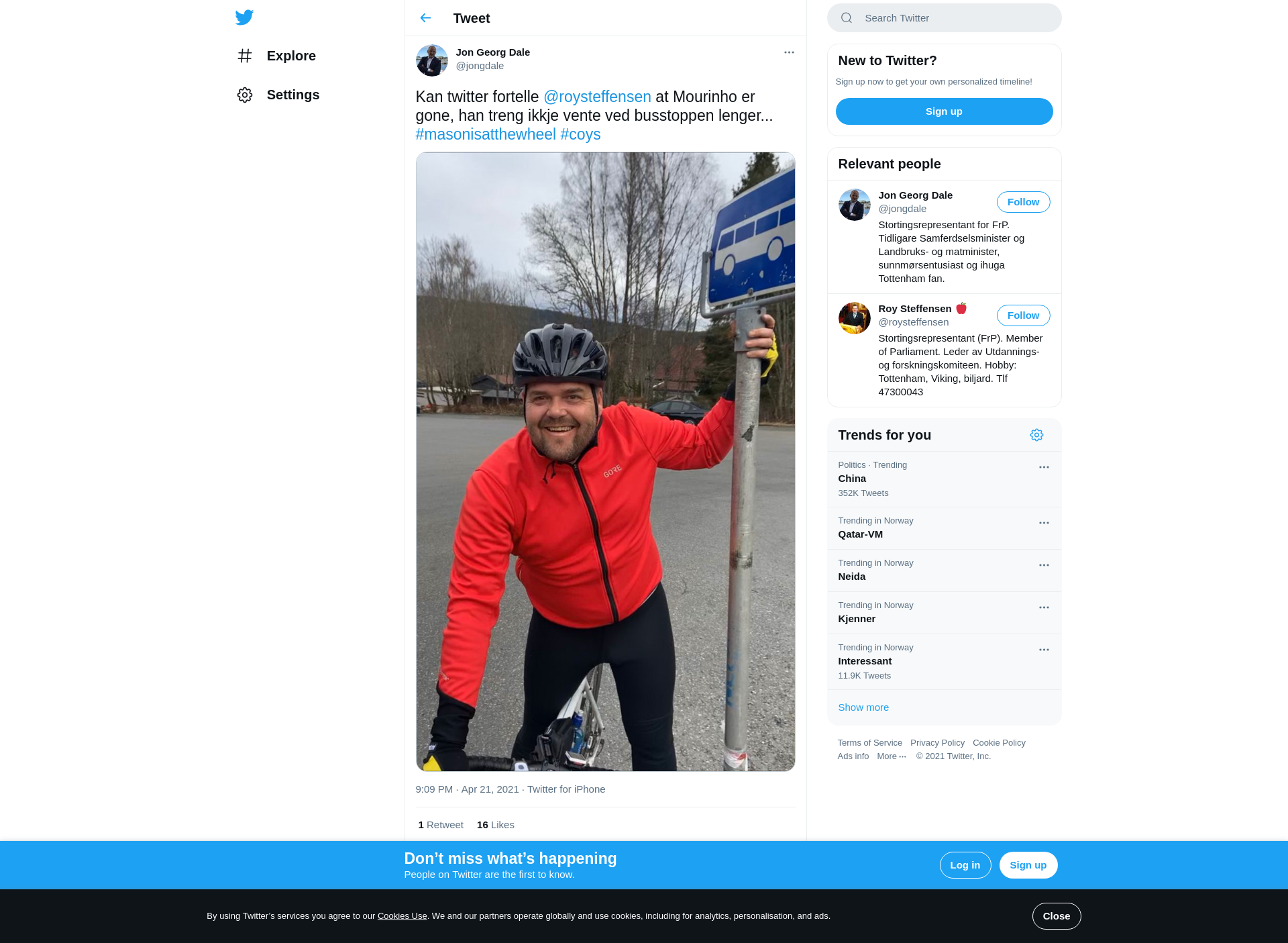 Kan twitter fortelle @roysteffensen at Mourinho er gone, han treng ikkje vente ved busstoppen lenger... #masonisatthewheel #coys https://t.co/uusSYMCoBL