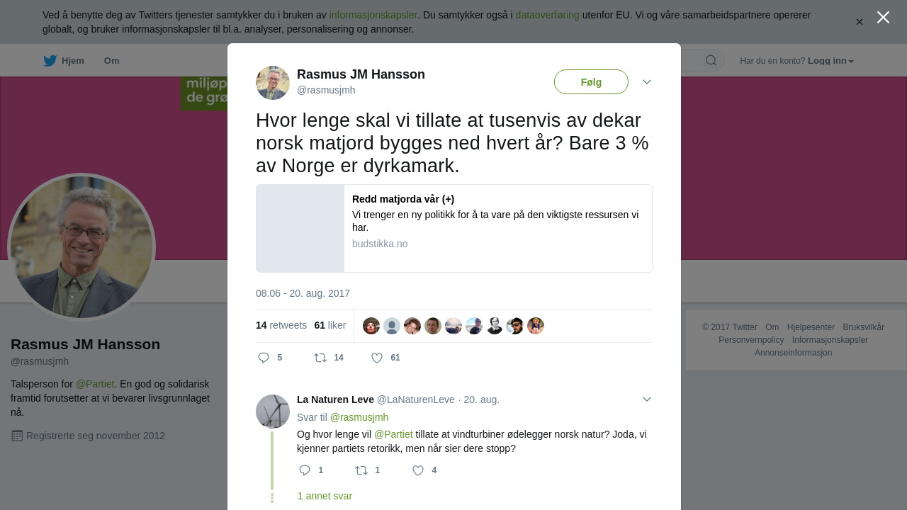 Hvor lenge skal vi tillate at tusenvis av dekar norsk matjord bygges ned hvert år? Bare 3 % av Norge er dyrkamark. https://t.co/sKmKgnXKRL