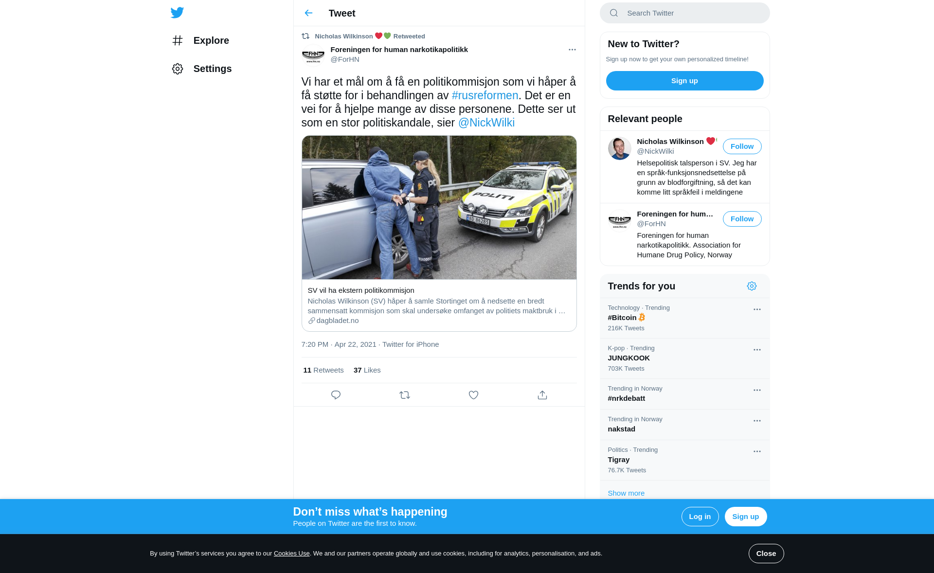 RT @ForHN: Vi har et mål om å få en politikommisjon som vi håper å få støtte for i behandlingen av #rusreformen. Det er en vei for å hjelpe mange av disse personene. Dette ser ut som en stor politiskandale, sier @NickWilki https://t.co/AQj2rTWf3L