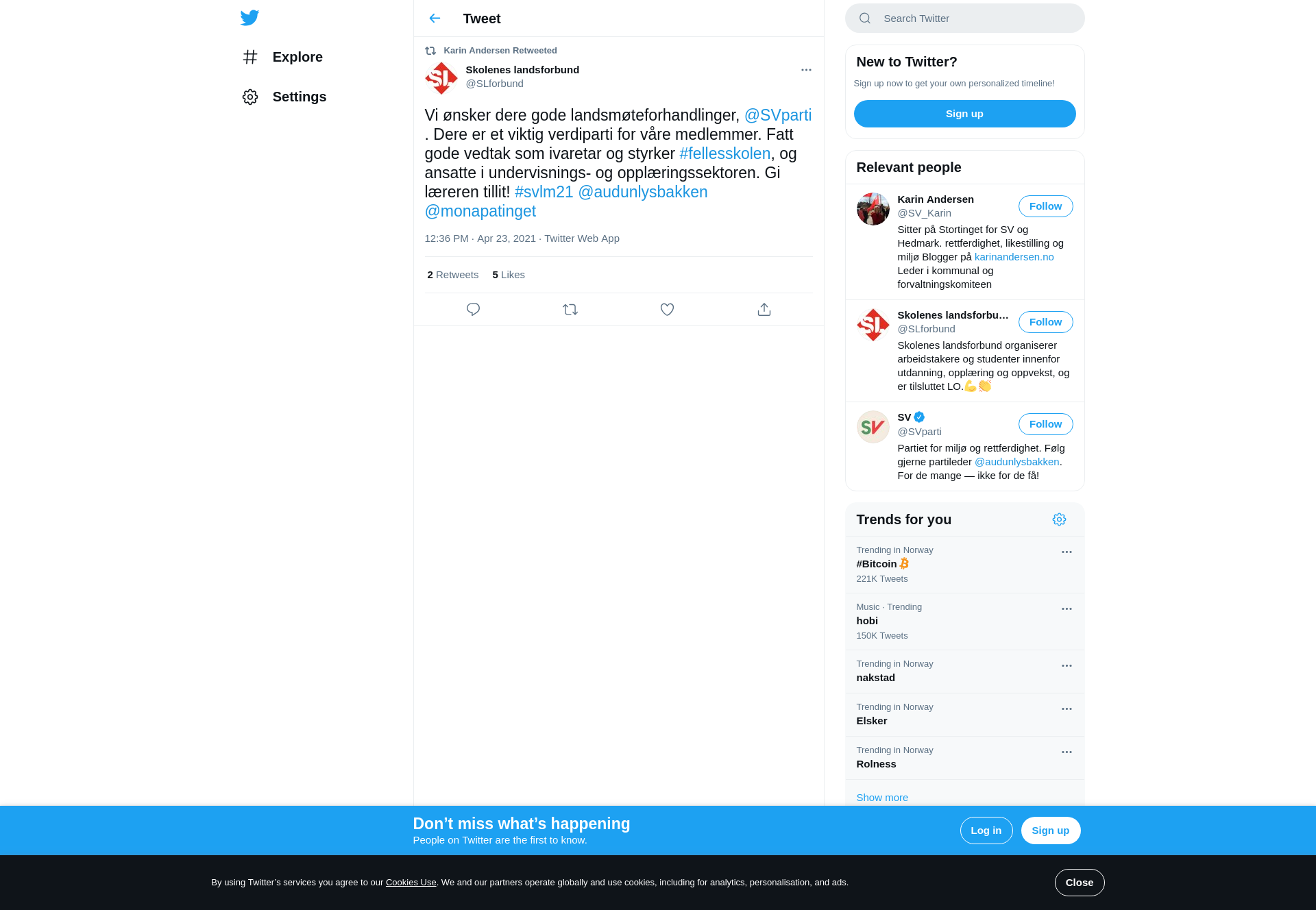 RT @SLforbund: Vi ønsker dere gode landsmøteforhandlinger, @SVparti. Dere er et viktig verdiparti for våre medlemmer. Fatt gode vedtak som ivaretar og styrker #fellesskolen, og ansatte i undervisnings- og opplæringssektoren. Gi læreren tillit! #svlm21 @audunlysbakken @monapatinget