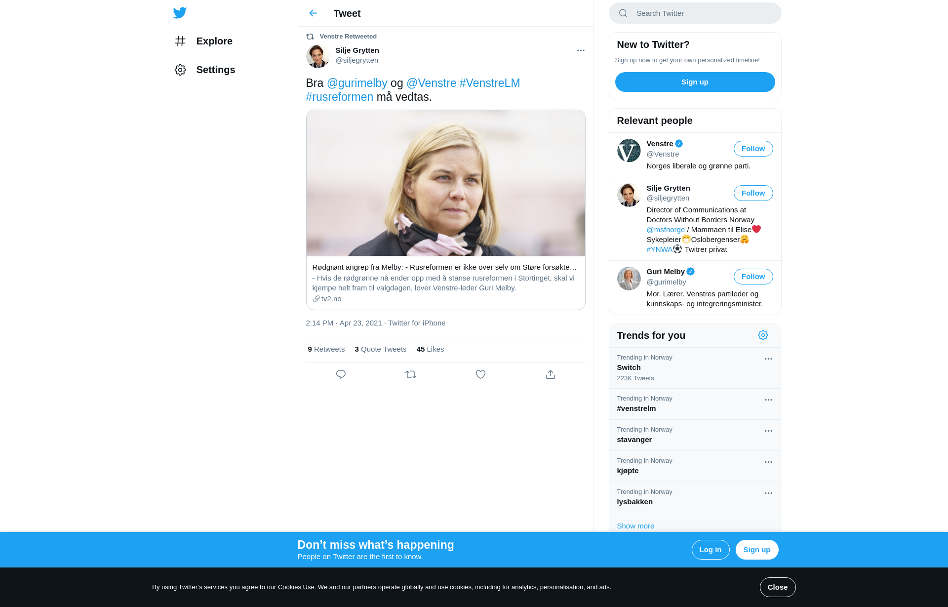 RT @siljegrytten: Bra @gurimelby og @Venstre #VenstreLM #rusreformen må vedtas. https://t.co/sqhYtaGcmZ