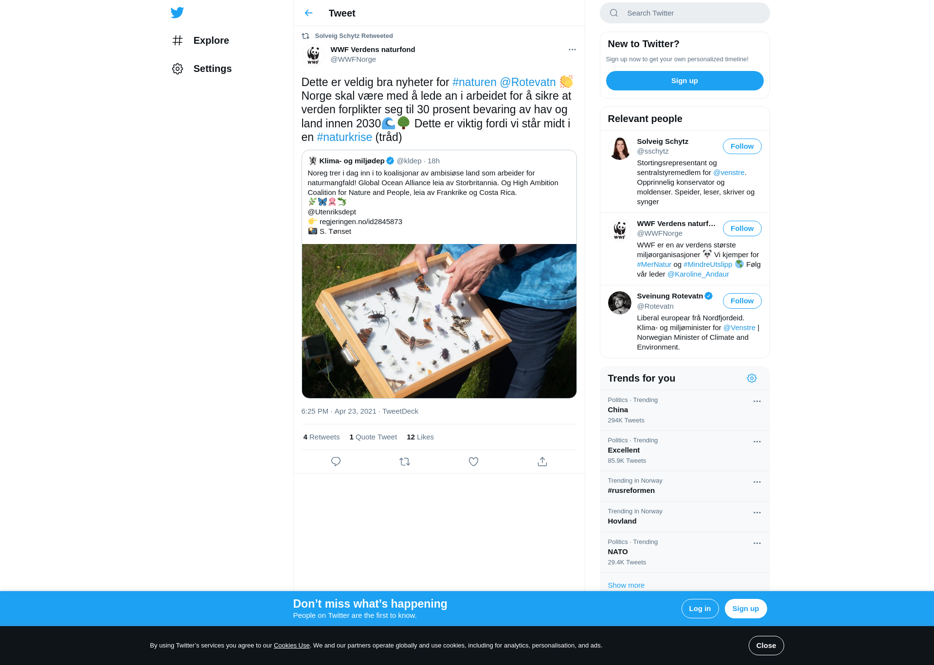RT @WWFNorge: Dette er veldig bra nyheter for #naturen @Rotevatn 👏 Norge skal være med å lede an i arbeidet for å sikre at verden forplikter seg til 30 prosent bevaring av hav og land innen 2030🌊🌳 Dette er viktig fordi vi står midt i en #naturkrise (tråd)