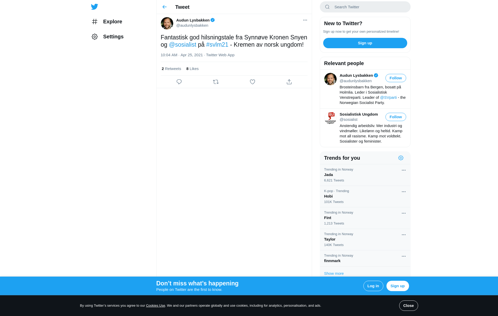 Fantastisk god hilsningstale fra Synnøve Kronen Snyen og @sosialist på #svlm21 - Kremen av norsk ungdom!