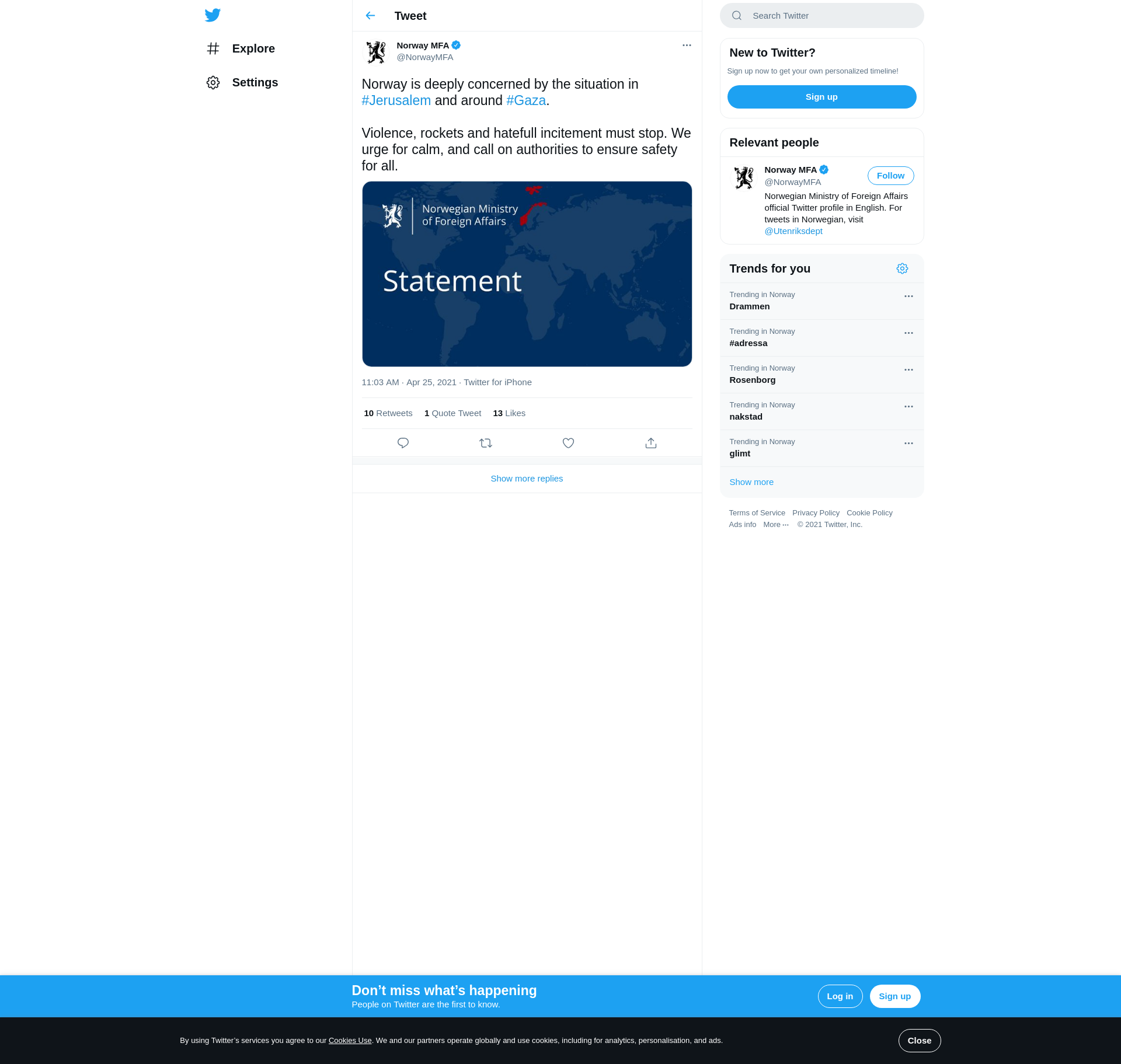 Norway is deeply concerned by the situation in #Jerusalem and around #Gaza.