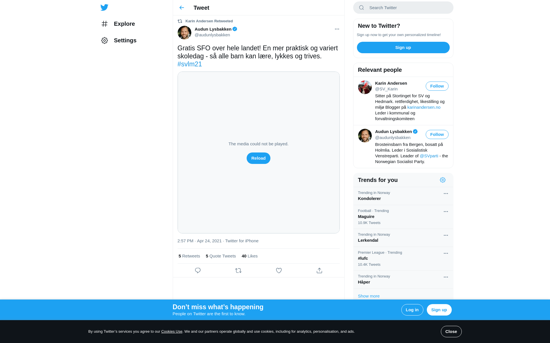 RT @audunlysbakken: Gratis SFO over hele landet! En mer praktisk og variert skoledag - så alle barn kan lære, lykkes og trives. #svlm21 https://t.co/evEOMBuMI8