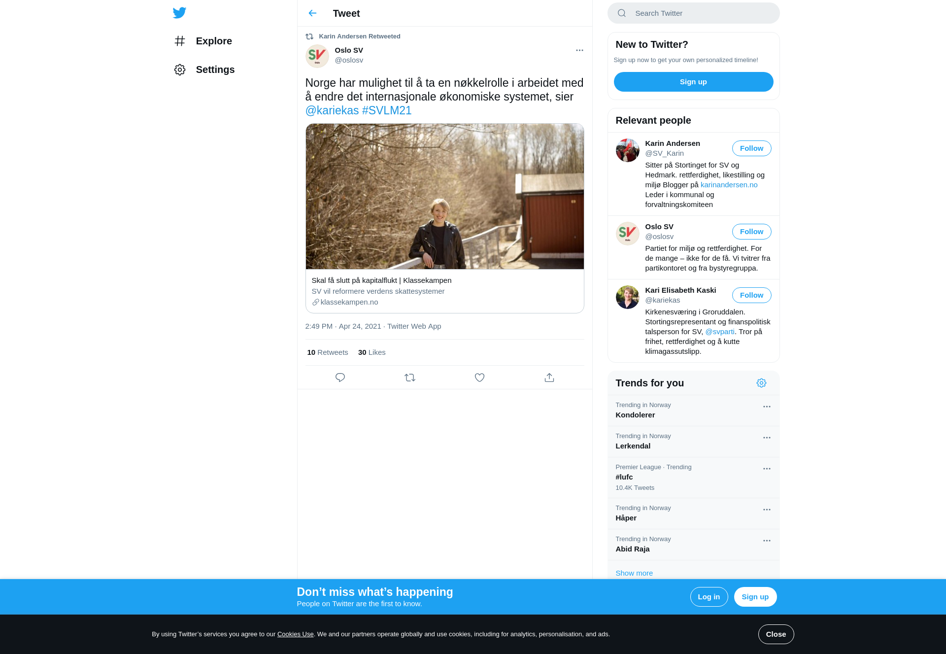 RT @oslosv: Norge har mulighet til å ta en nøkkelrolle i arbeidet med å endre det internasjonale økonomiske systemet, sier @kariekas #SVLM21 https://t.co/GQrjrcmDD2