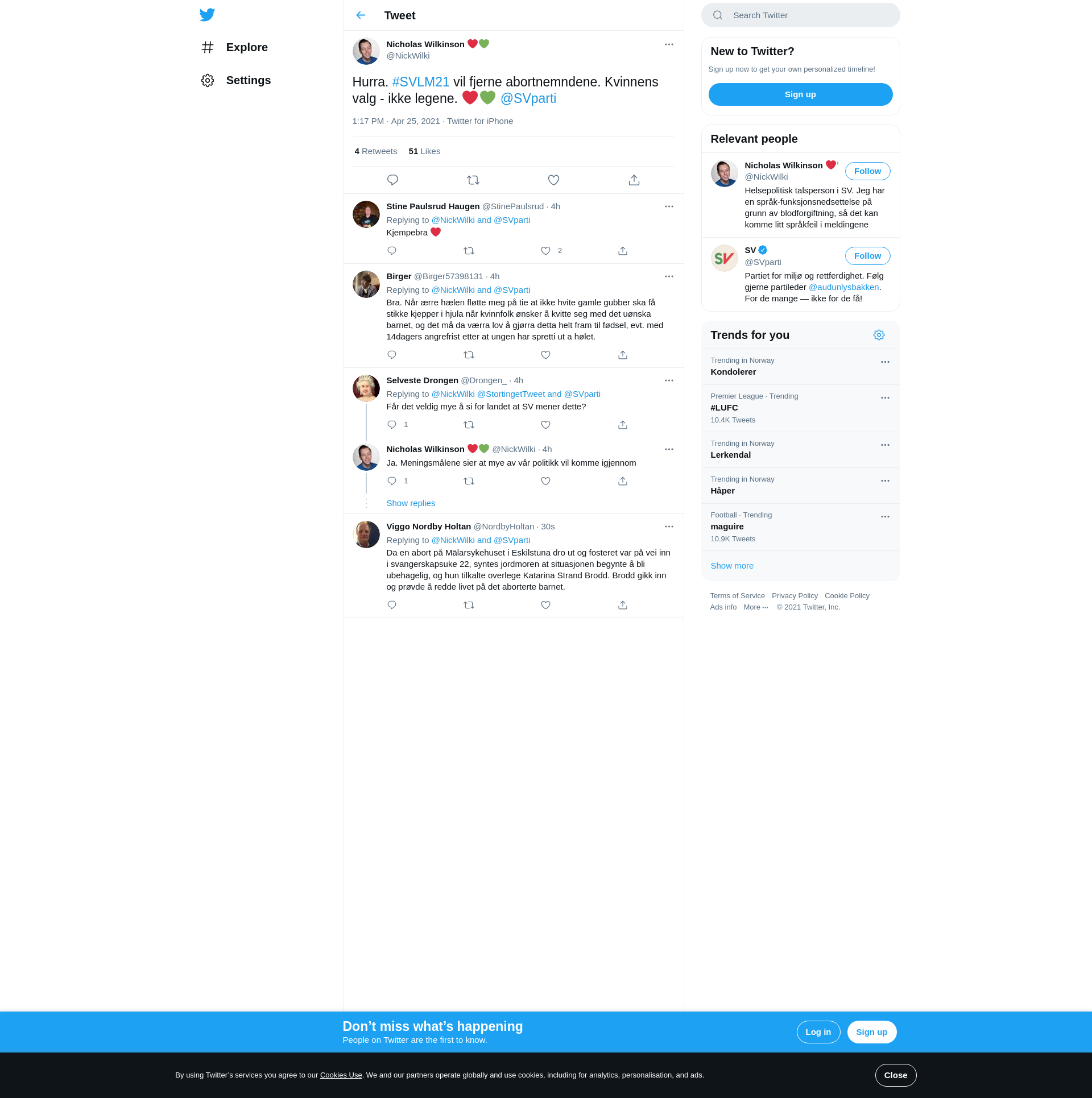 Hurra. #SVLM21 vil fjerne abortnemndene. Kvinnens valg - ikke legene. ❤️💚 @SVparti