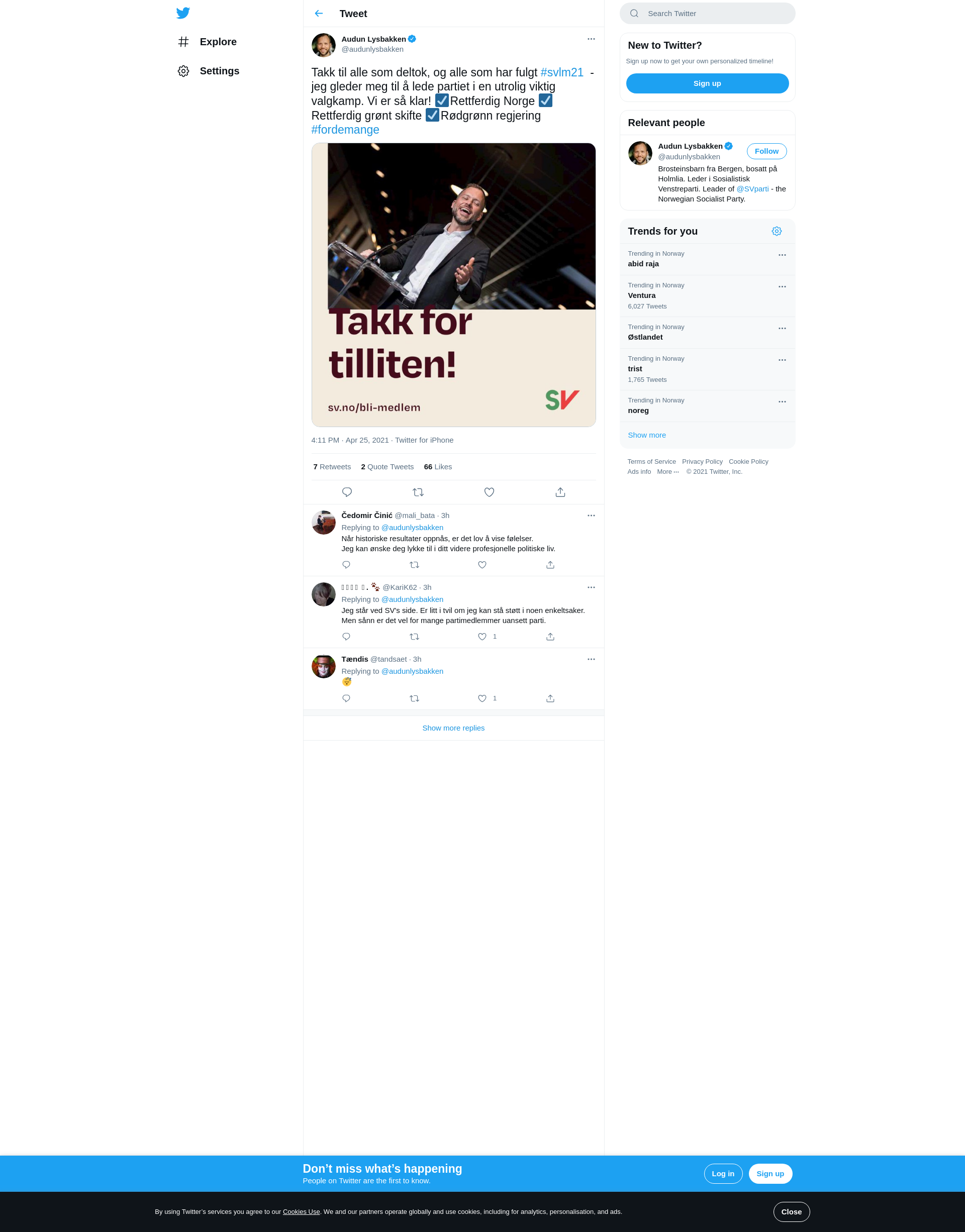 Takk til alle som deltok, og alle som har fulgt #svlm21 - jeg gleder meg til å lede partiet i en utrolig viktig valgkamp. Vi er så klar! ☑️Rettferdig Norge ☑️Rettferdig grønt skifte ☑️Rødgrønn regjering #fordemange https://t.co/BX3J2i2Og1