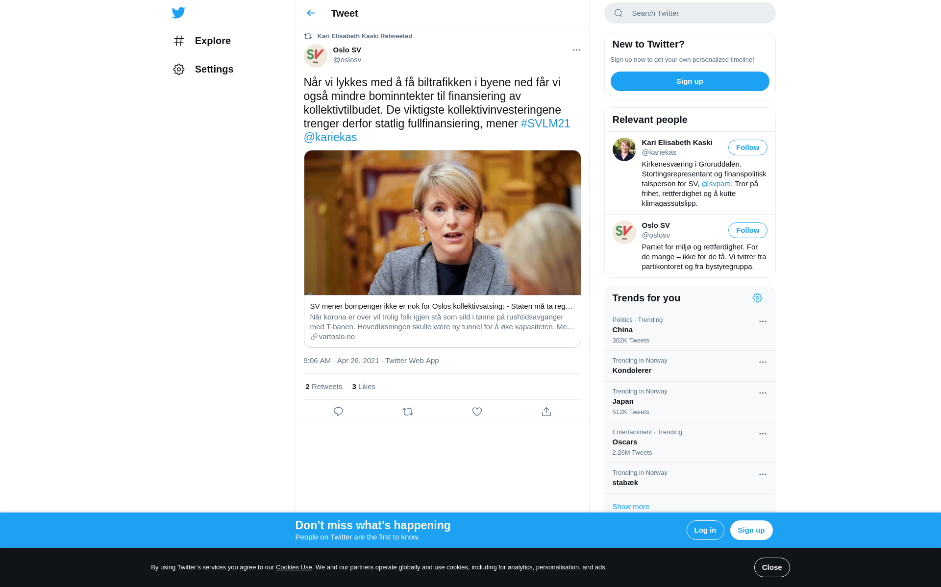 RT @oslosv: Når vi lykkes med å få biltrafikken i byene ned får vi også mindre bominntekter til finansiering av kollektivtilbudet. De viktigste kollektivinvesteringene trenger derfor statlig fullfinansiering, mener #SVLM21 @kariekas https://t.co/RMMj0TbAFf