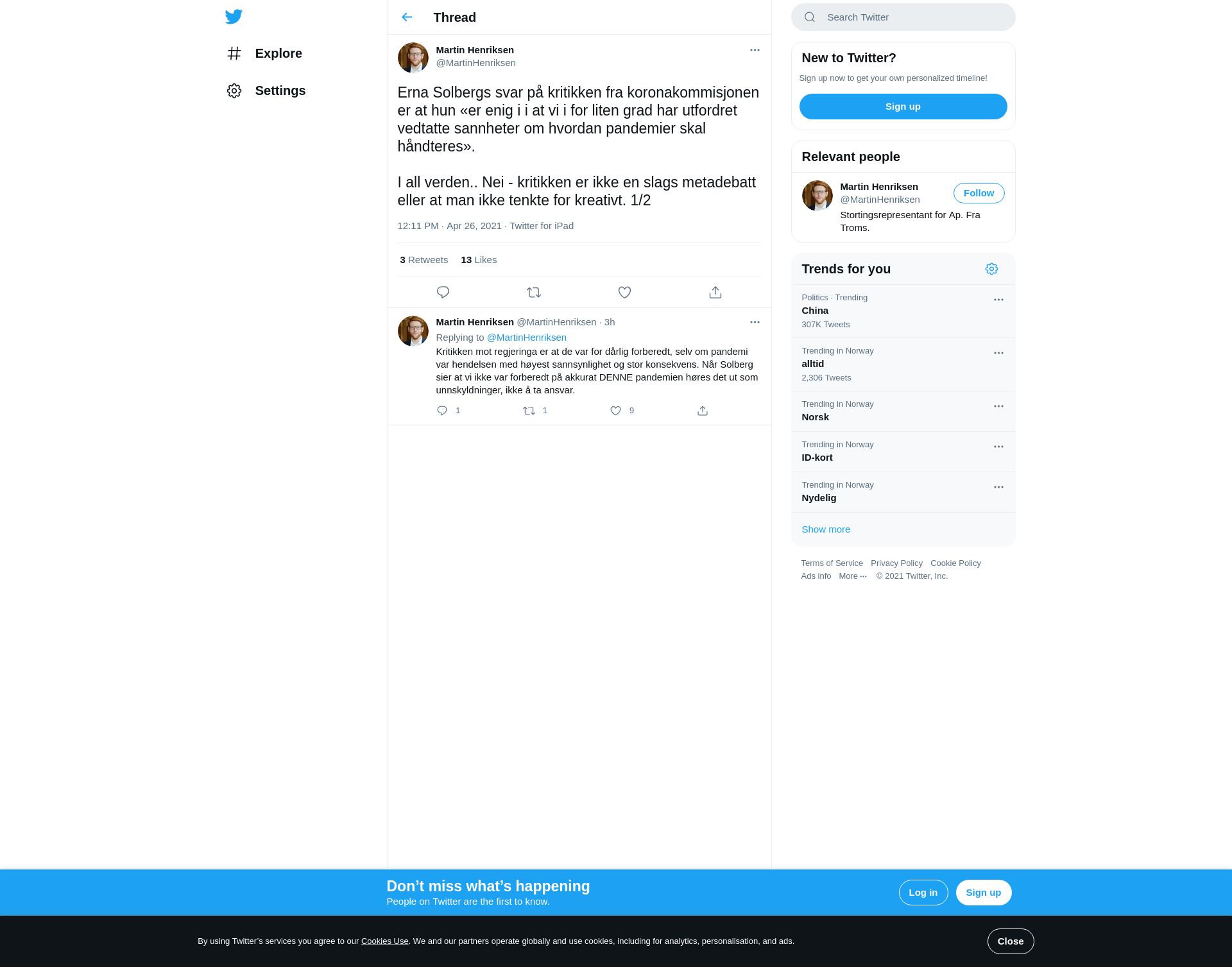 Erna Solbergs svar på kritikken fra koronakommisjonen er at hun «er enig i i at vi i for liten grad har utfordret vedtatte sannheter om hvordan pandemier skal håndteres».