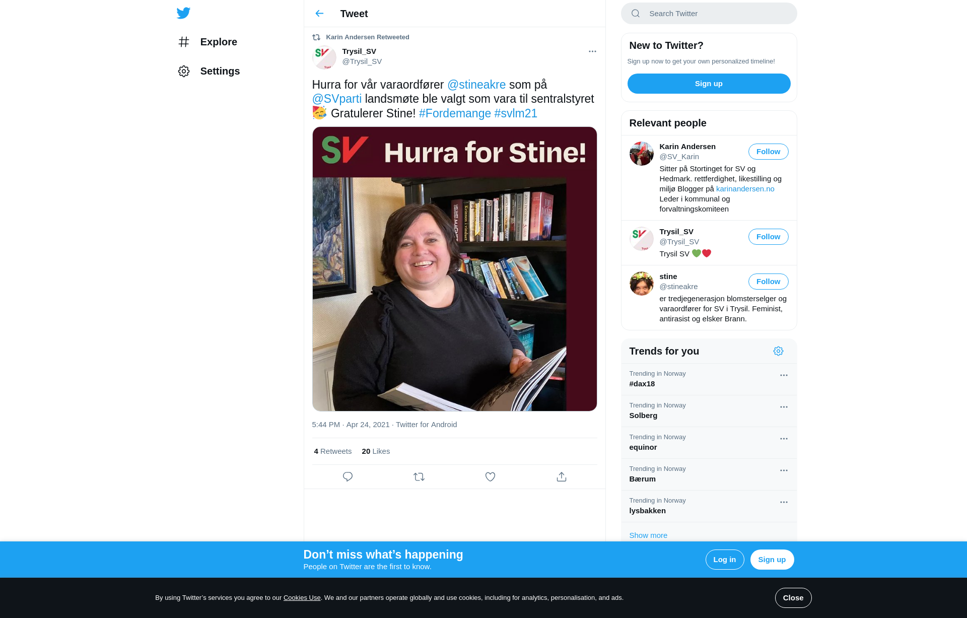 RT @Trysil_SV: Hurra for vår varaordfører @stineakre som på @SVparti landsmøte ble valgt som vara til sentralstyret 🥳 Gratulerer Stine! #Fordemange #svlm21 https://t.co/n7FjTr77xp