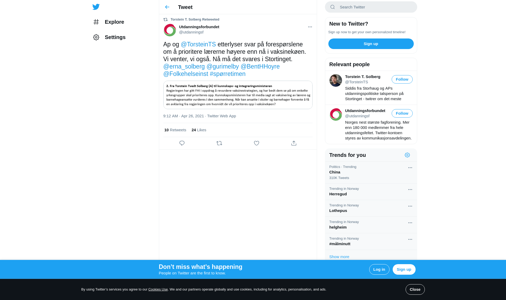 RT @utdanningsf: Ap og @TorsteinTS etterlyser svar på forespørslene om å prioritere lærerne høyere enn nå i vaksinekøen. Vi venter, vi også. Nå må det svares i Stortinget. @erna_solberg @gurimelby @BentHHoyre @Folkehelseinst #spørretimen https://t.co/u5PklGGRj7