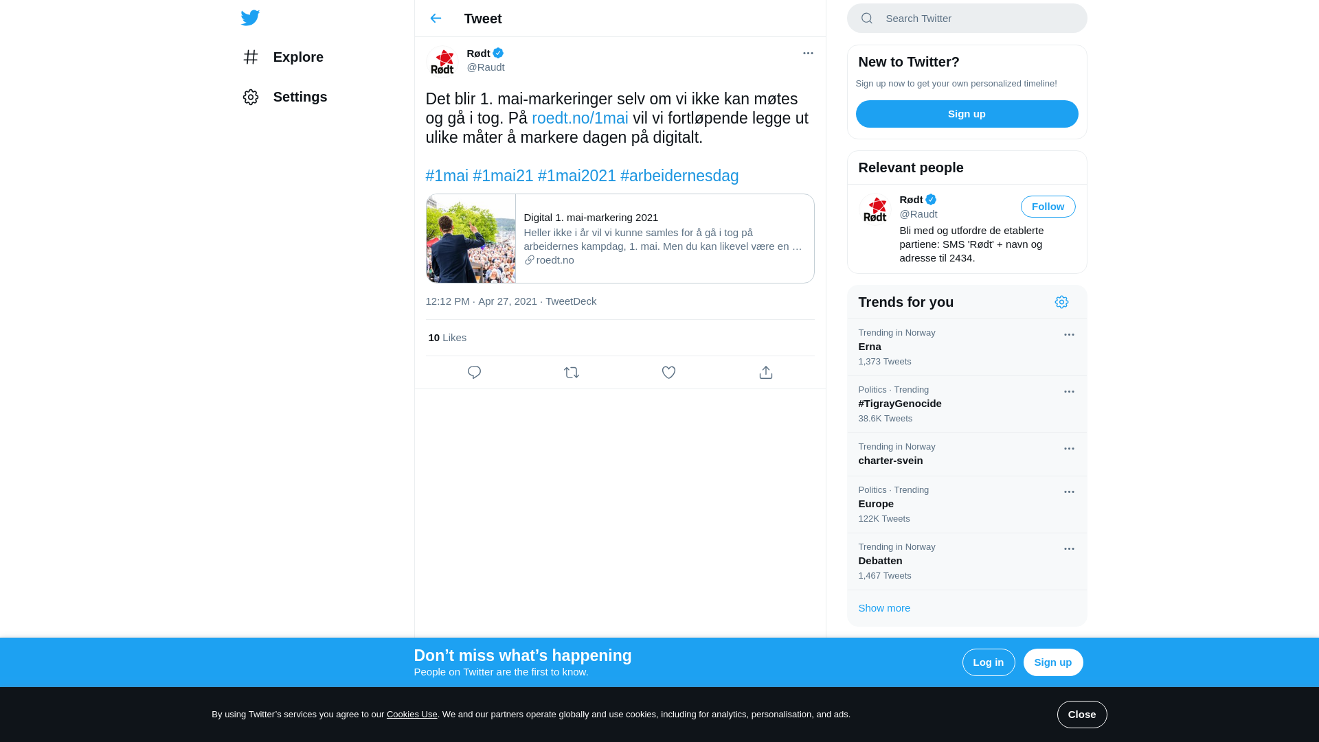 Det blir 1. mai-markeringer selv om vi ikke kan møtes og gå i tog. På https://t.co/JY2yPJCnfv vil vi fortløpende legge ut ulike måter å markere dagen på digitalt.