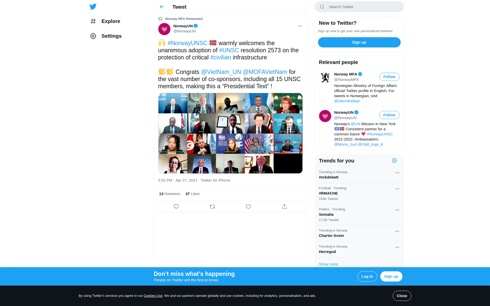 RT @NorwayUN: 🙌 #NorwayUNSC 🇳🇴 warmly welcomes the unanimous adoption of #UNSC resolution 2573 on the protection of critical #civilian infrastructure