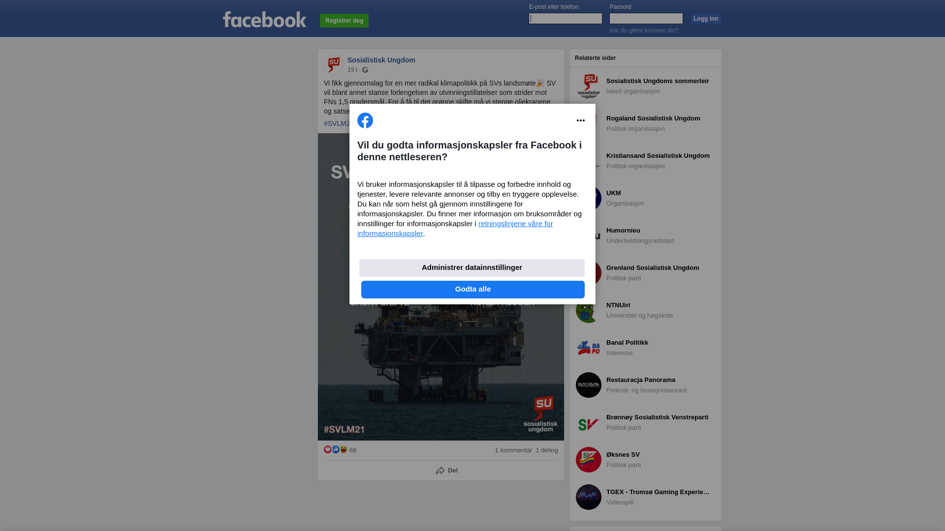 Vi fikk gjennomslag for en mer radikal klimapolitikk på SVs landsmøte🎉 SV vil blant annet stanse forlengelsen av utvinningstillatelser som strider mot FNs 1,5 gradersmål. For å få til det grønne skifte må vi stenge oljekranene og satse på grønn energi!