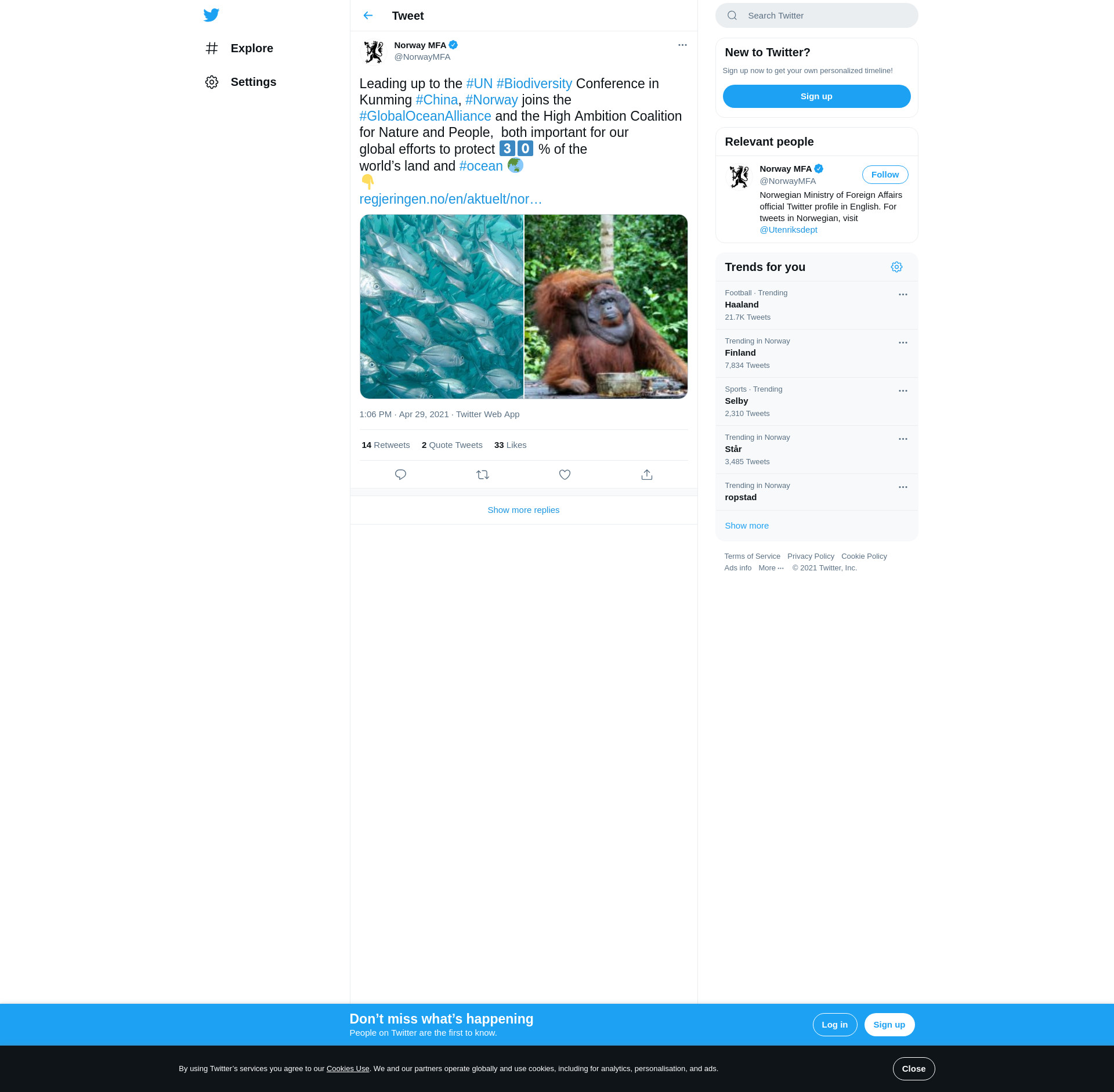 2021 is an important year for nature and biodiversity worldwide. In connection with the international negotiations on a post-2020 global biodiversity framework, Norway has announced that it is joining two groups of countries that are working to save bi...