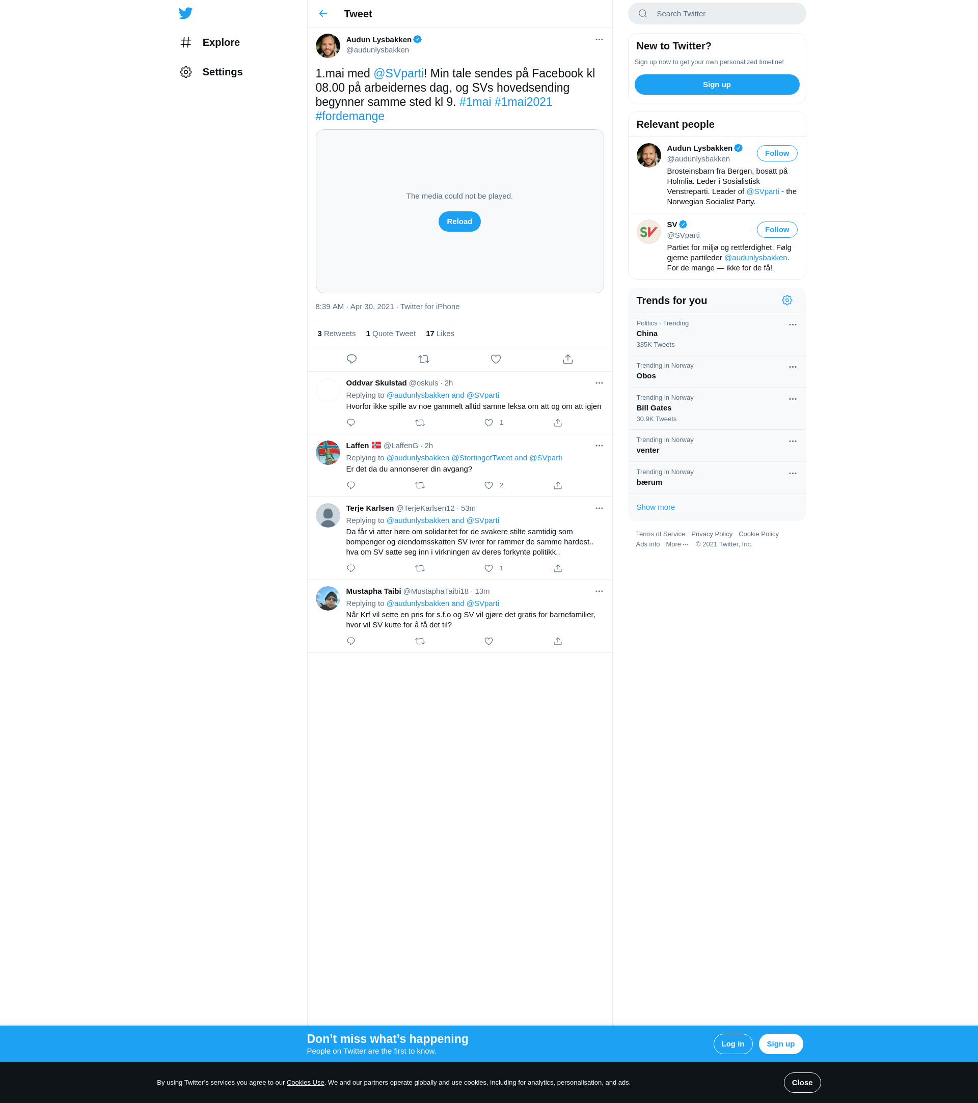 1.mai med @SVparti! Min tale sendes på Facebook kl 08.00 på arbeidernes dag, og SVs hovedsending begynner samme sted kl 9. #1mai #1mai2021 #fordemange https://t.co/YLetCV6Acw
