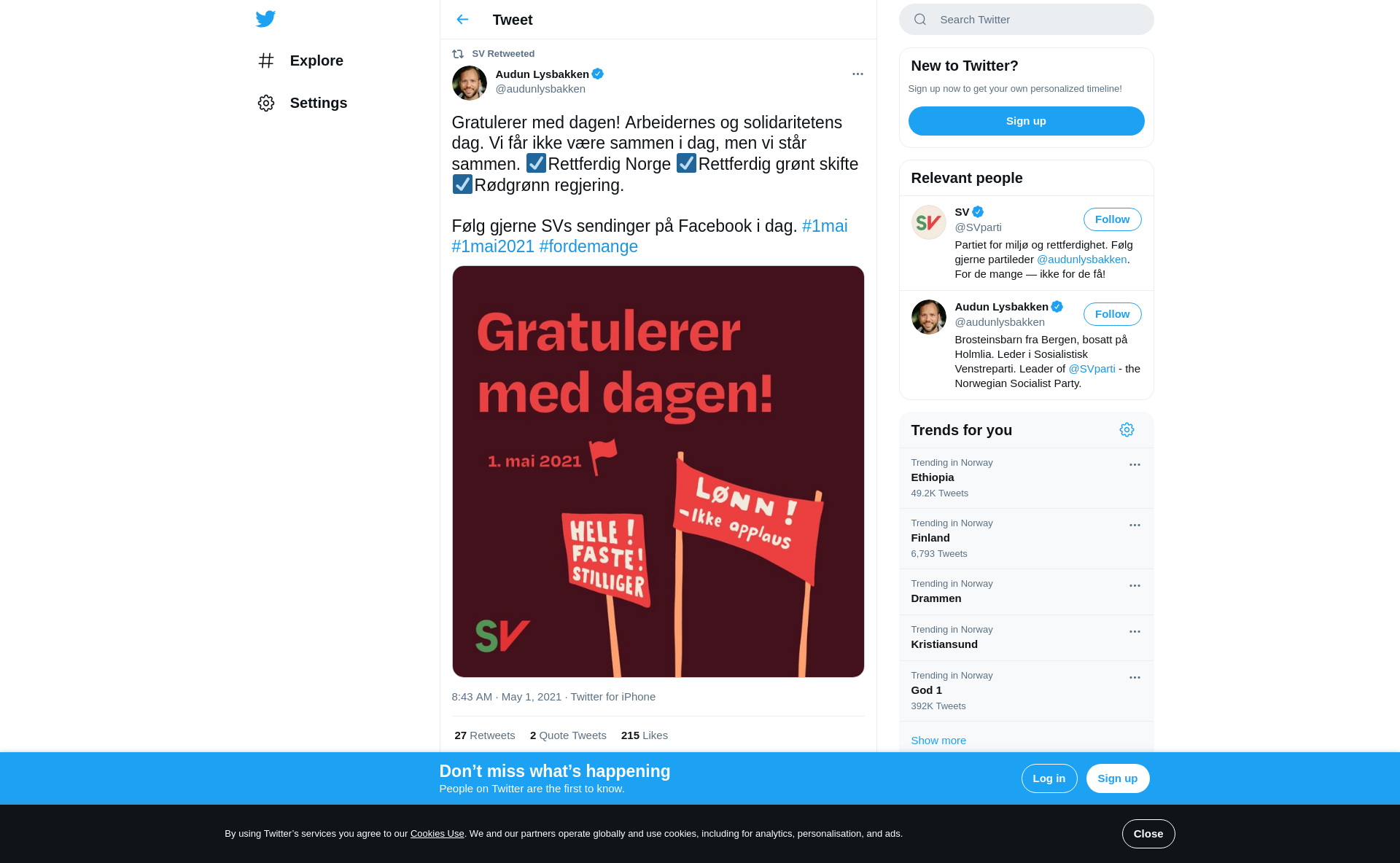 Følg gjerne SVs sendinger på Facebook i dag. #1mai #1mai2021 #fordemange https://t.co/1zoBxrIoFX