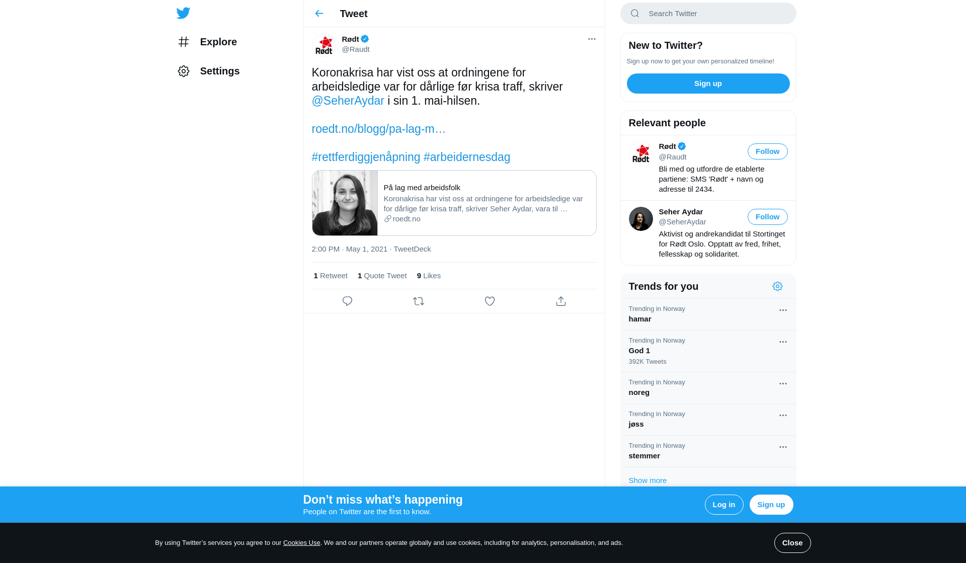 Koronakrisa har vist oss at ordningene for arbeidsledige var for dårlige før krisa traff, skriver @SeherAydar i sin 1. mai-hilsen.