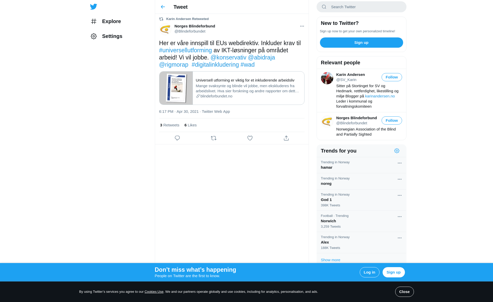 RT @Blindeforbundet: Her er våre innspill til EUs webdirektiv. Inkluder krav til #universellutforming av IKT-løsninger på området arbeid! Vi vil jobbe. @konservativ @abidraja @rigmorap #digitalinkludering #wad https://t.co/yobovvZOgR
