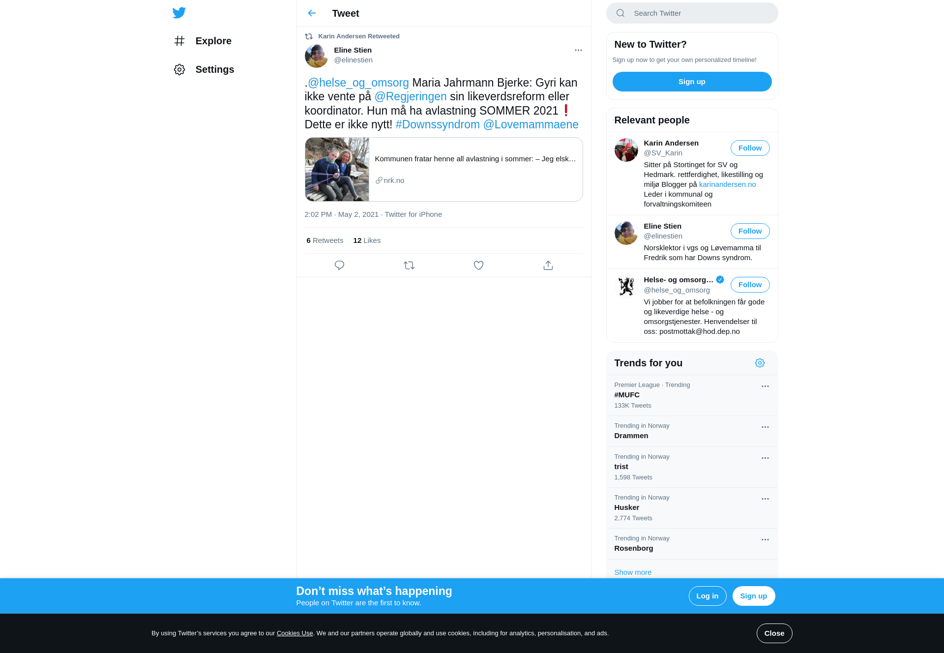 RT @elinestien: .@helse_og_omsorg Maria Jahrmann Bjerke: Gyri kan ikke vente på @Regjeringen sin likeverdsreform eller koordinator. Hun må ha avlastning SOMMER 2021❗️Dette er ikke nytt! #Downssyndrom @Lovemammaene