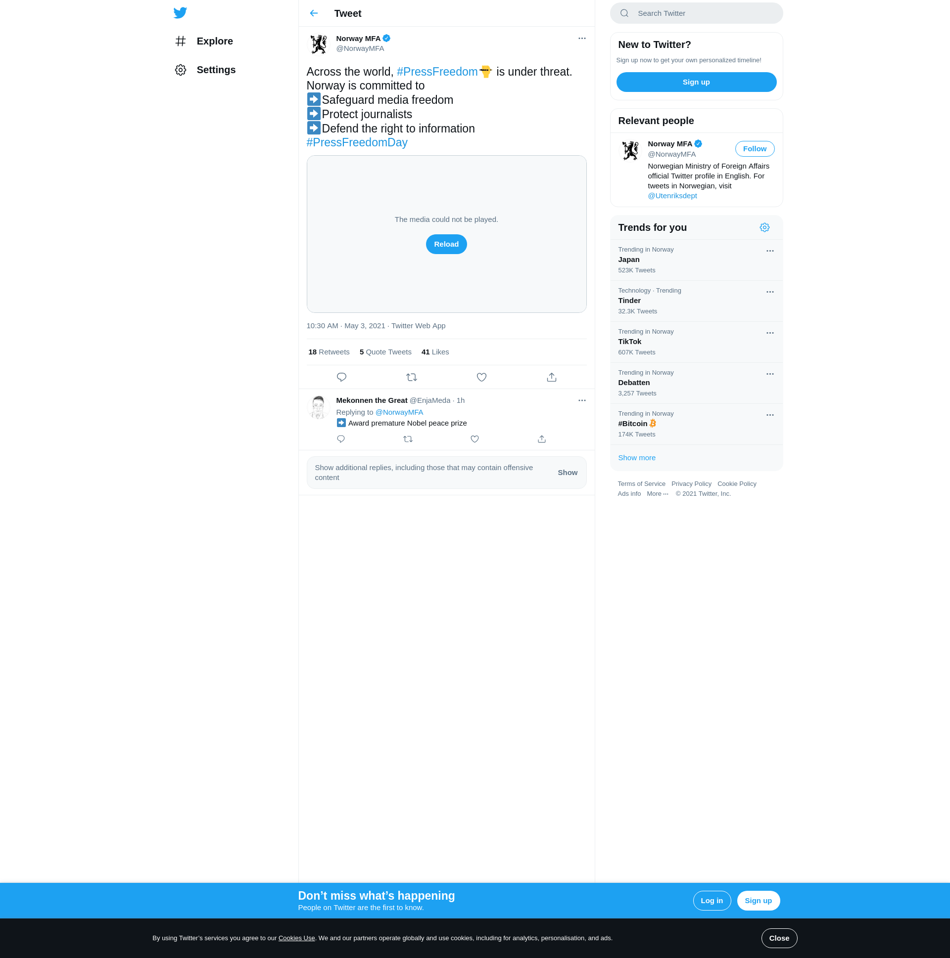 Across the world, #PressFreedom is under threat. Norway is committed to ➡️Safeguard media freedom ➡️Protect journalists ➡️Defend the right to information #PressFreedomDay https://t.co/skaSf8Fwgy