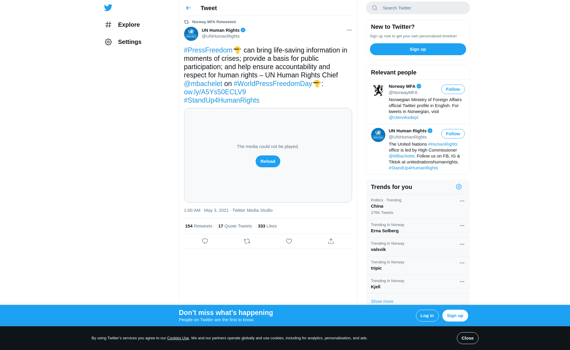 RT @UNHumanRights: #PressFreedom can bring life-saving information in moments of crises; provide a basis for public participation; and help ensure accountability and respect for human rights – UN Human Rights Chief @mbachelet on #WorldPressFreedomDay: https://t.co/ukbDVhCAU8