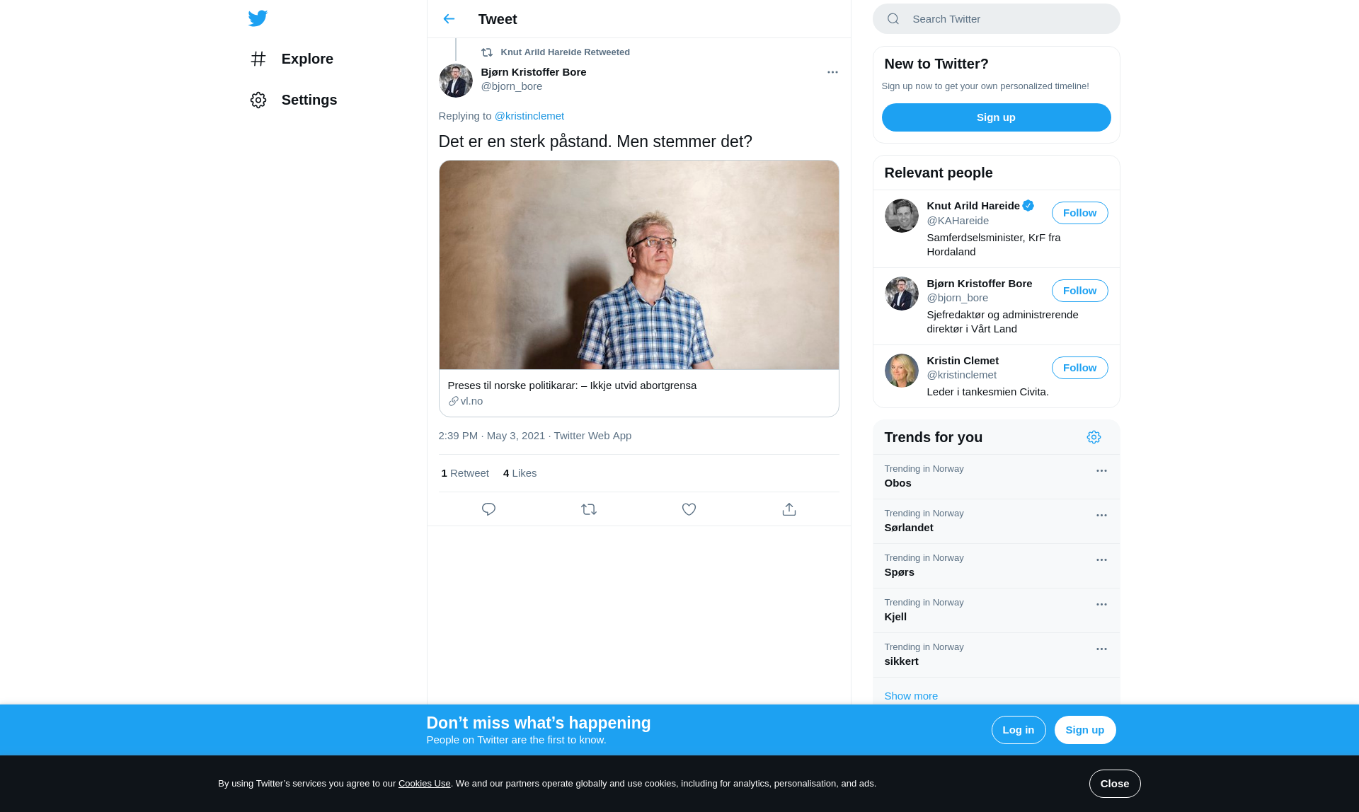Preses til norske politikarar: – Ikkje utvid abortgrensa