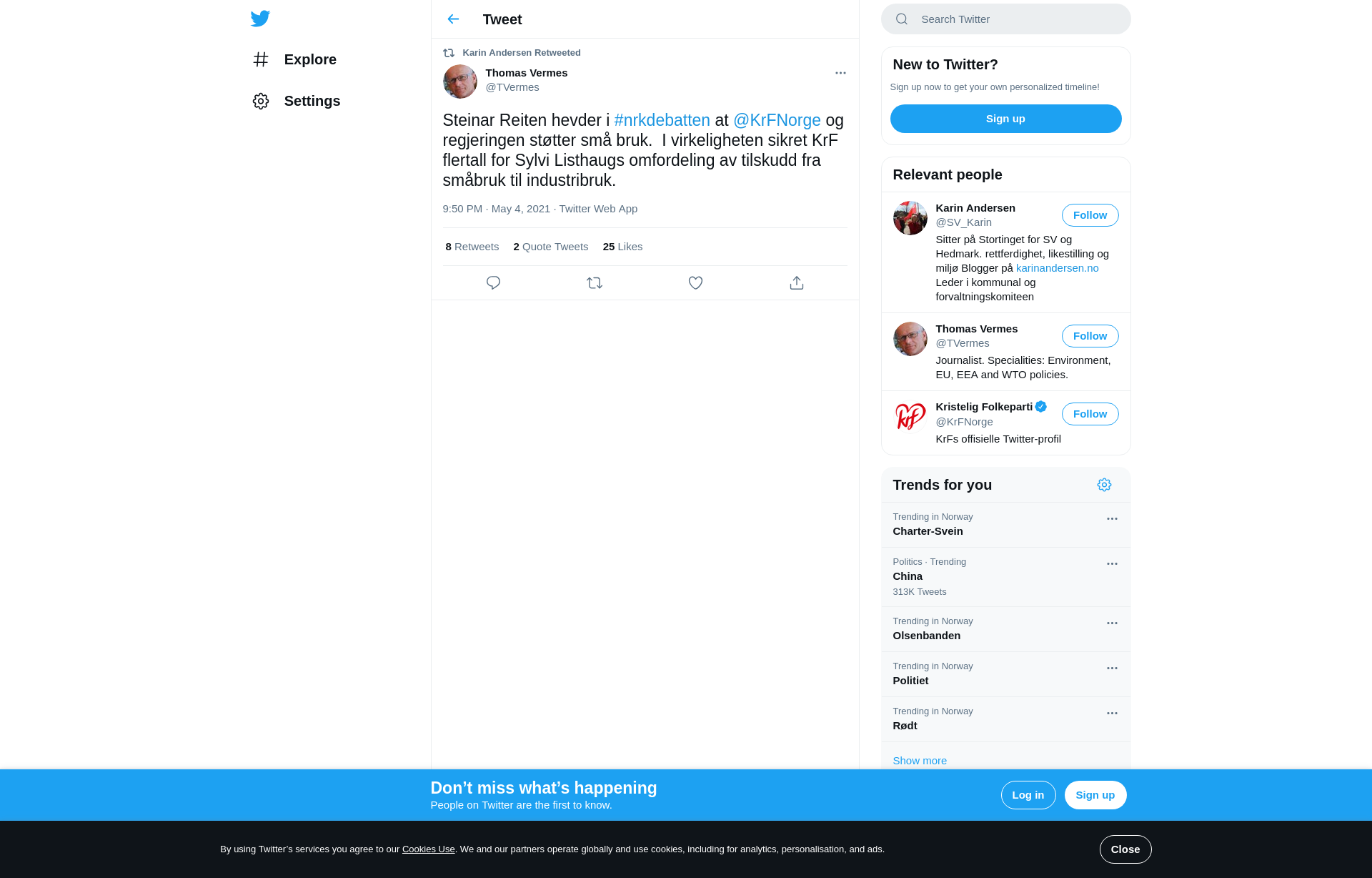 RT @TVermes: Steinar Reiten hevder i #nrkdebatten at @KrFNorge og regjeringen støtter små bruk. I virkeligheten sikret KrF flertall for Sylvi Listhaugs omfordeling av tilskudd fra småbruk til industribruk.