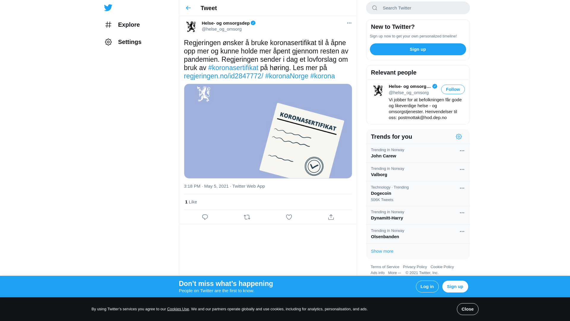 Regjeringen ønsker å bruke koronasertifikat til å åpne opp mer og kunne holde mer åpent gjennom resten av pandemien. Mer utstrakt bruk av koronasertifikat vil trolig kreve et bedre lovgrunnlag. Regjeringen sender derfor i dag et lovforslag om bruk av k...