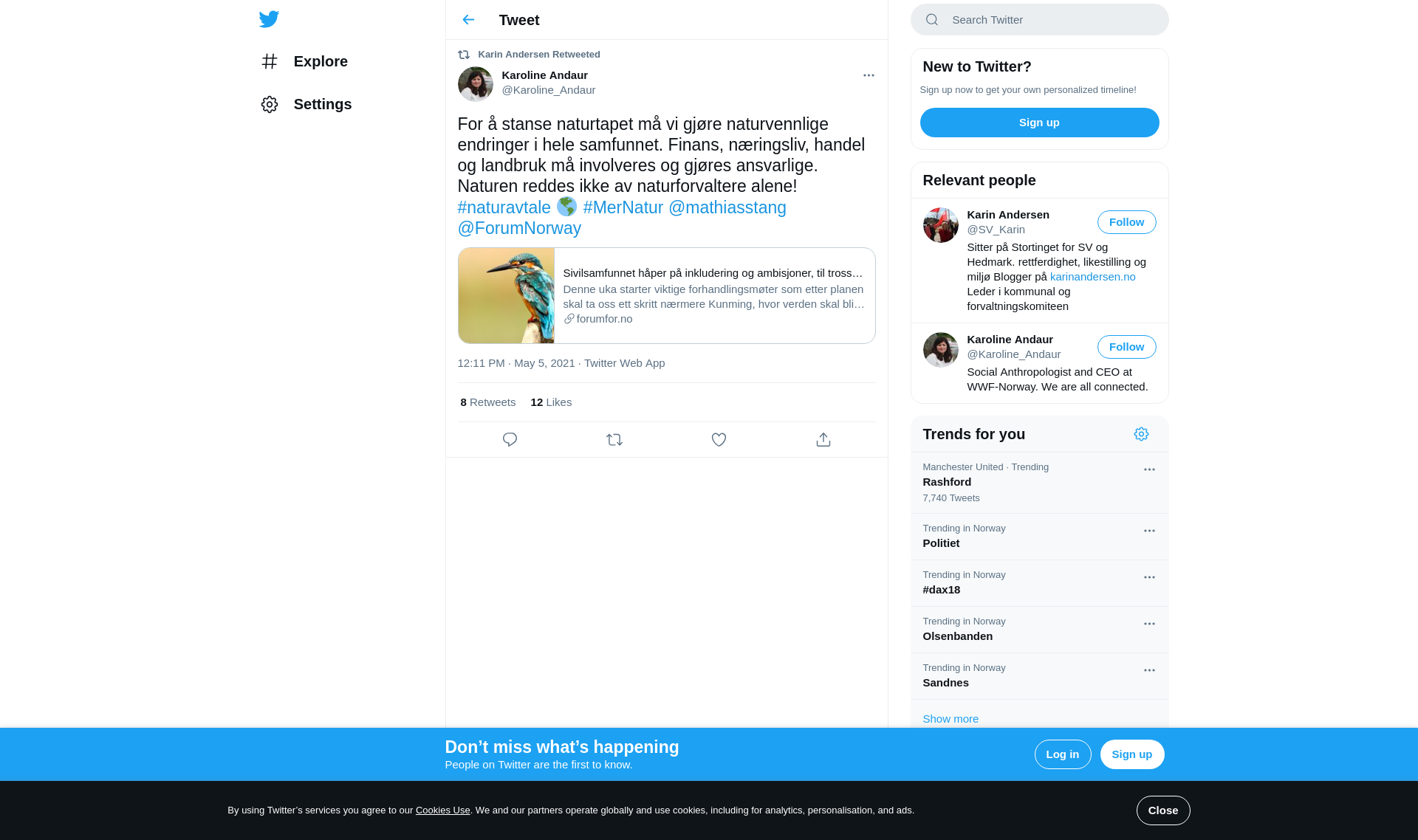 RT @Karoline_Andaur: For å stanse naturtapet må vi gjøre naturvennlige endringer i hele samfunnet. Finans, næringsliv, handel og landbruk må involveres og gjøres ansvarlige. Naturen reddes ikke av naturforvaltere alene! #naturavtale 🌎 #MerNatur @mathiasstang @ForumNorway