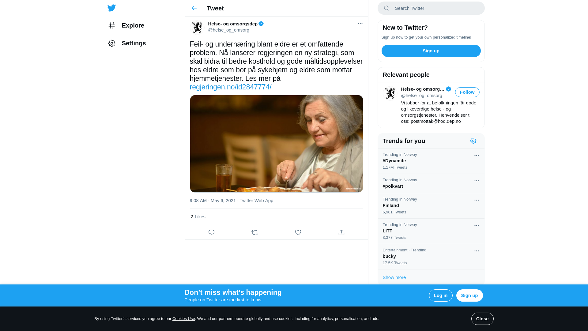 Feil- og undernæring blant eldre er et omfattende problem. Nå lanserer regjeringen en ny strategi, som skal bidra til bedre kosthold og gode måltidsopplevelser hos eldre som bor på sykehjem og eldre som mottar hjemmetjenester. Les mer på https://t.co/2huZ9Ac48v https://t.co/0jfwhzgTqs