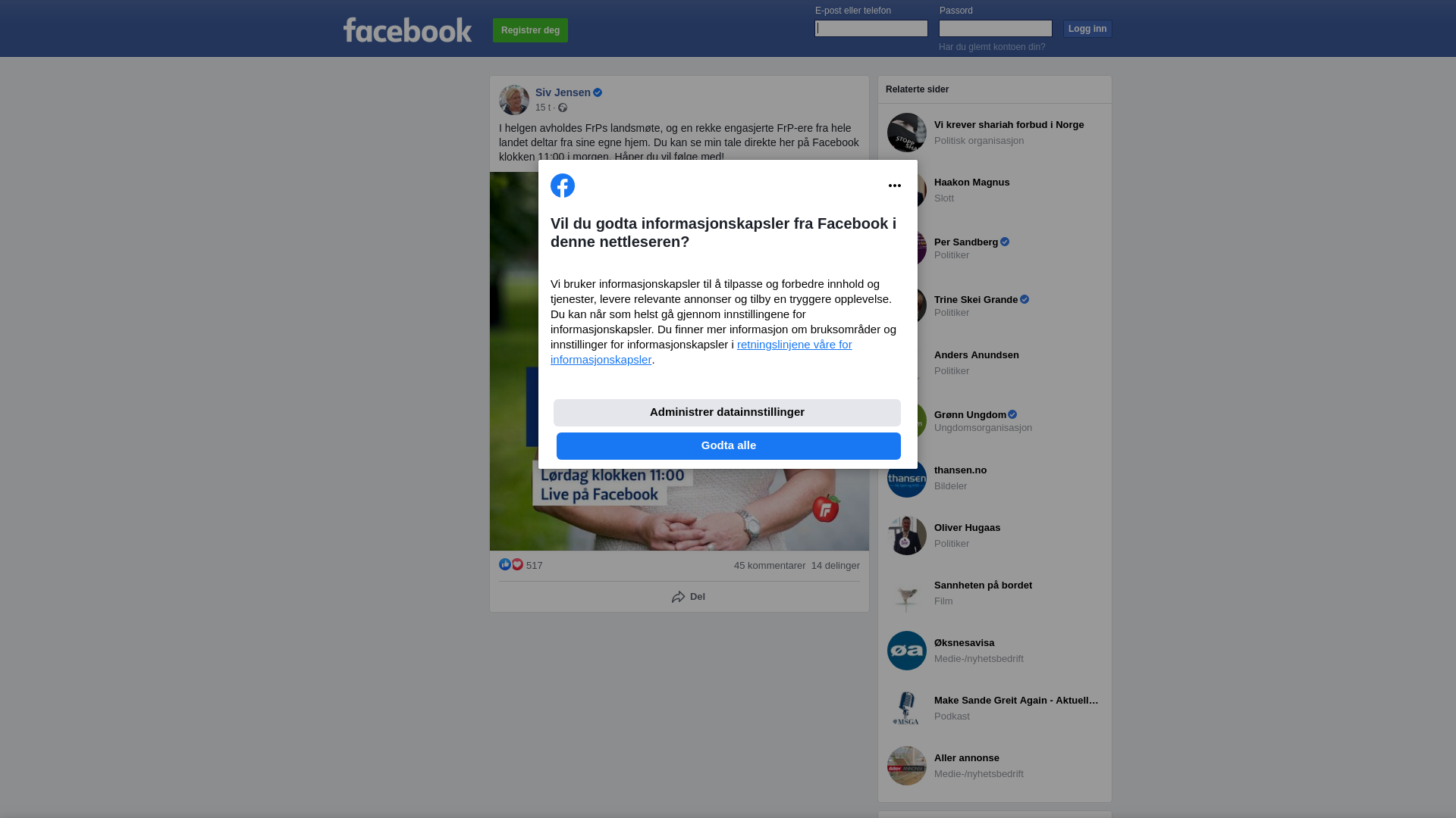 I helgen avholdes FrPs landsmøte, og en rekke engasjerte FrP-ere fra hele landet deltar fra sine egne hjem. Du kan se min tale direkte her på Facebook klokken 11:00 i morgen. Håper du vil følge med!