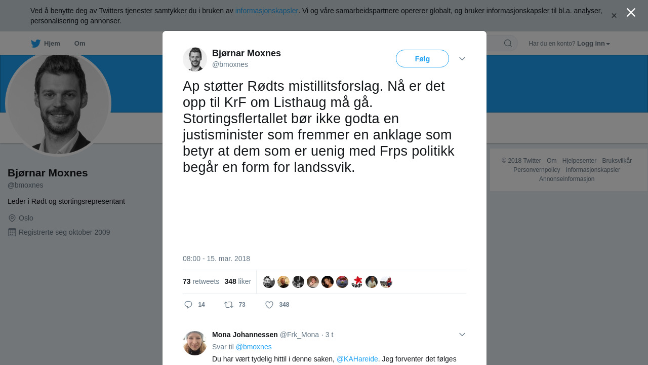 Ap støtter Rødts mistillitsforslag. Nå er det opp til KrF om Listhaug må gå. Stortingsflertallet bør ikke godta en… https://t.co/fCkArgdg28