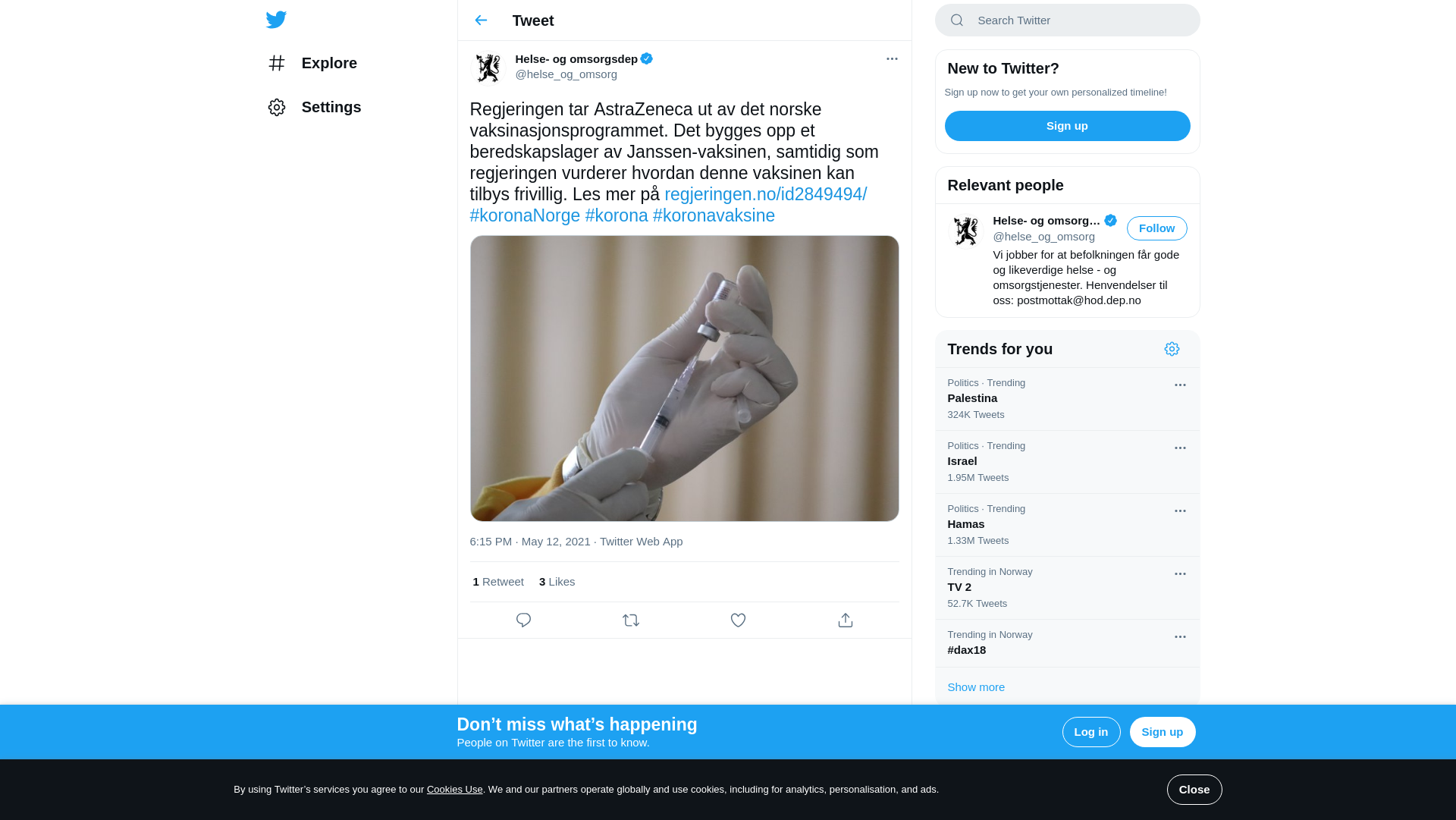 Regjeringen følger anbefalingen til Folkehelseinstituttet og Vorland-utvalget, og tar AstraZeneca ut av det norske vaksinasjonsprogrammet. Det bygges opp et beredskapslager av Janssen-vaksinen, samtidig som regjeringen vurderer hvordan denne vaksinen k...