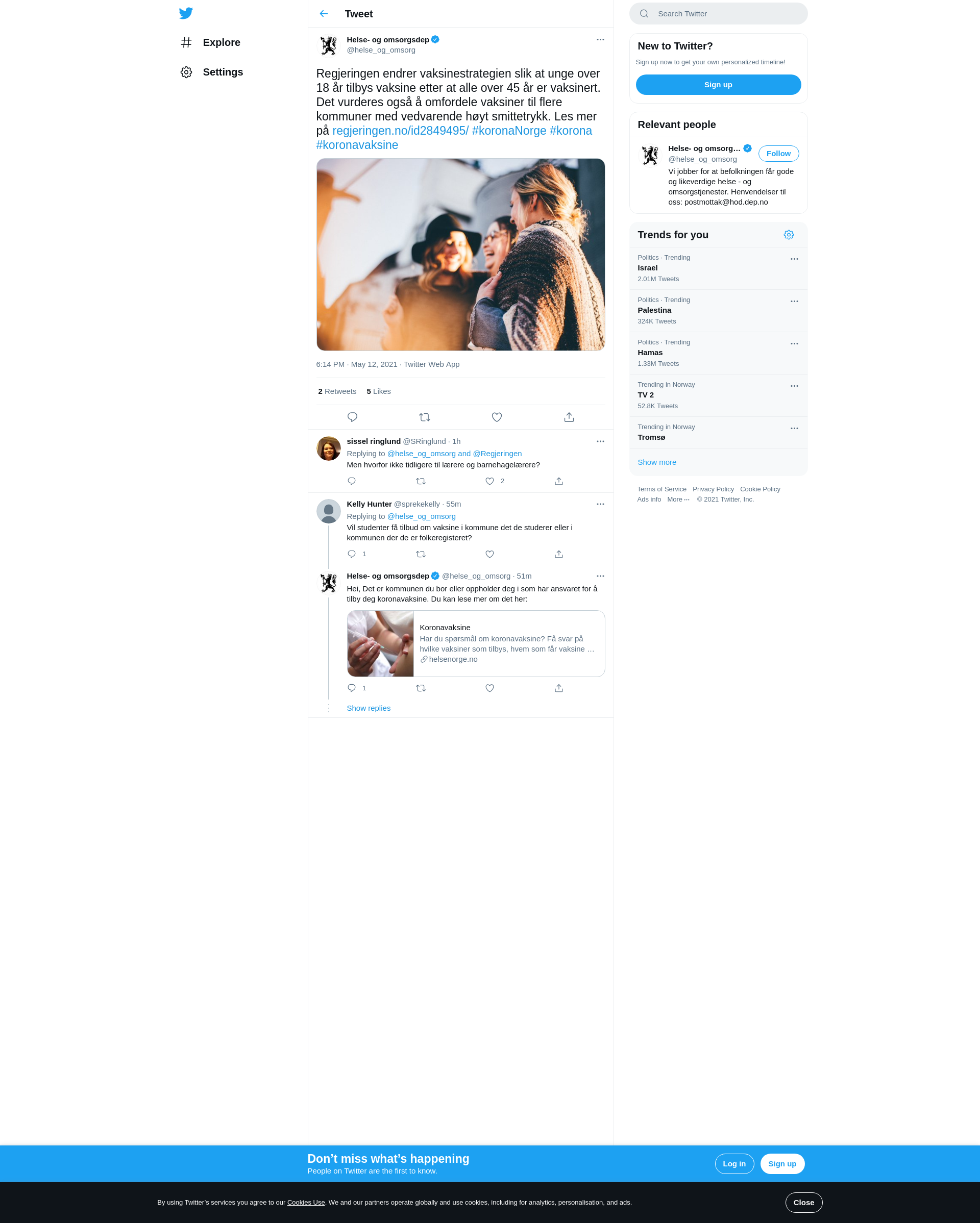 Regjeringen endrer vaksinestrategien slik at unge over 18 år tilbys vaksine etter at alle over 45 år er vaksinert. Det vurderes også å omfordele vaksiner til flere kommuner med vedvarende høyt smittetrykk. Les mer på https://t.co/VNvTlTE5fA #koronaNorge #korona #koronavaksine https://t.co/ra7FBKehBt