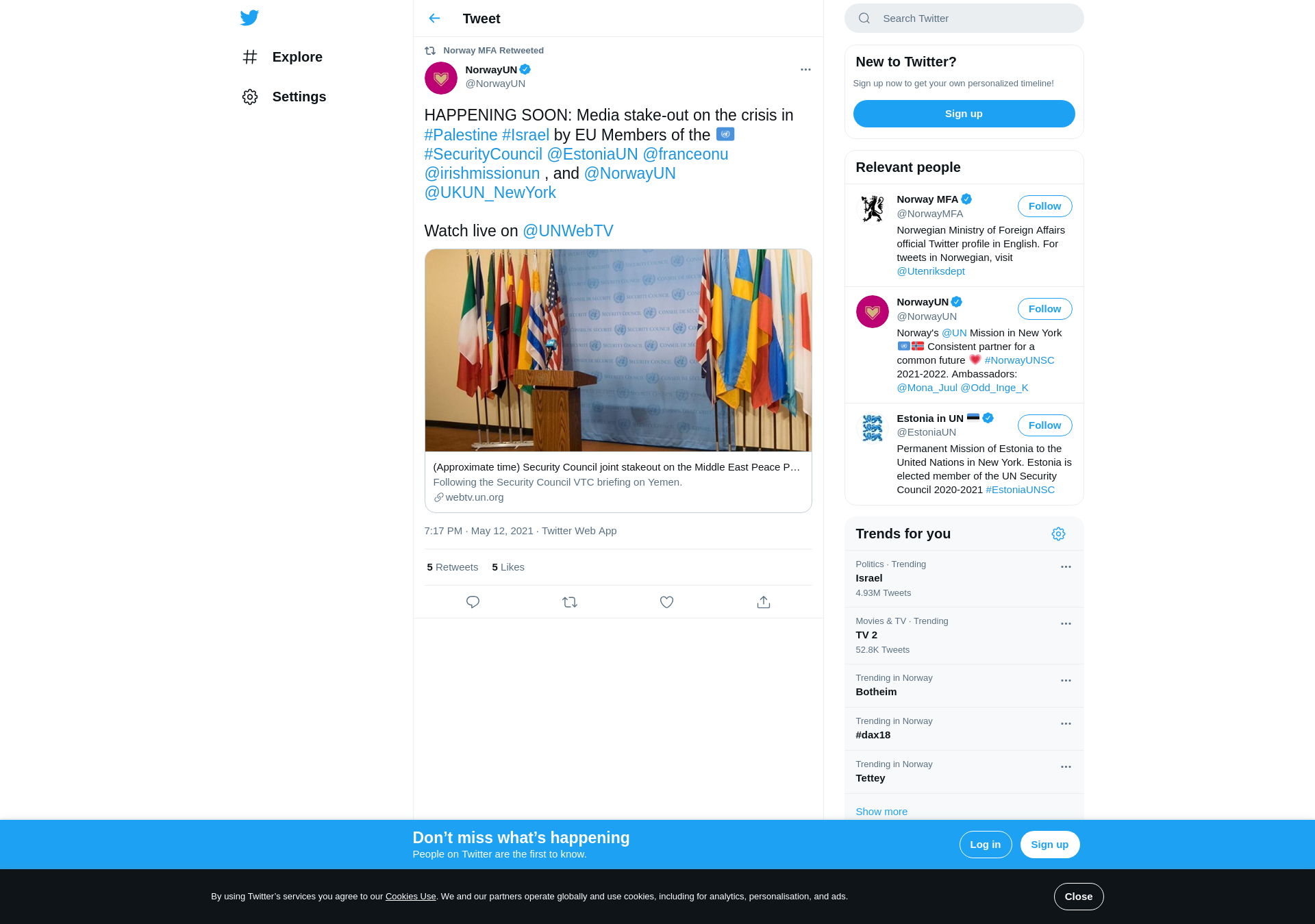 RT @NorwayUN: HAPPENING SOON: Media stake-out on the crisis in #Palestine #Israel by EU Members of the 🇺🇳 #SecurityCouncil @EstoniaUN @franceonu @irishmissionun , and @NorwayUN @UKUN_NewYork