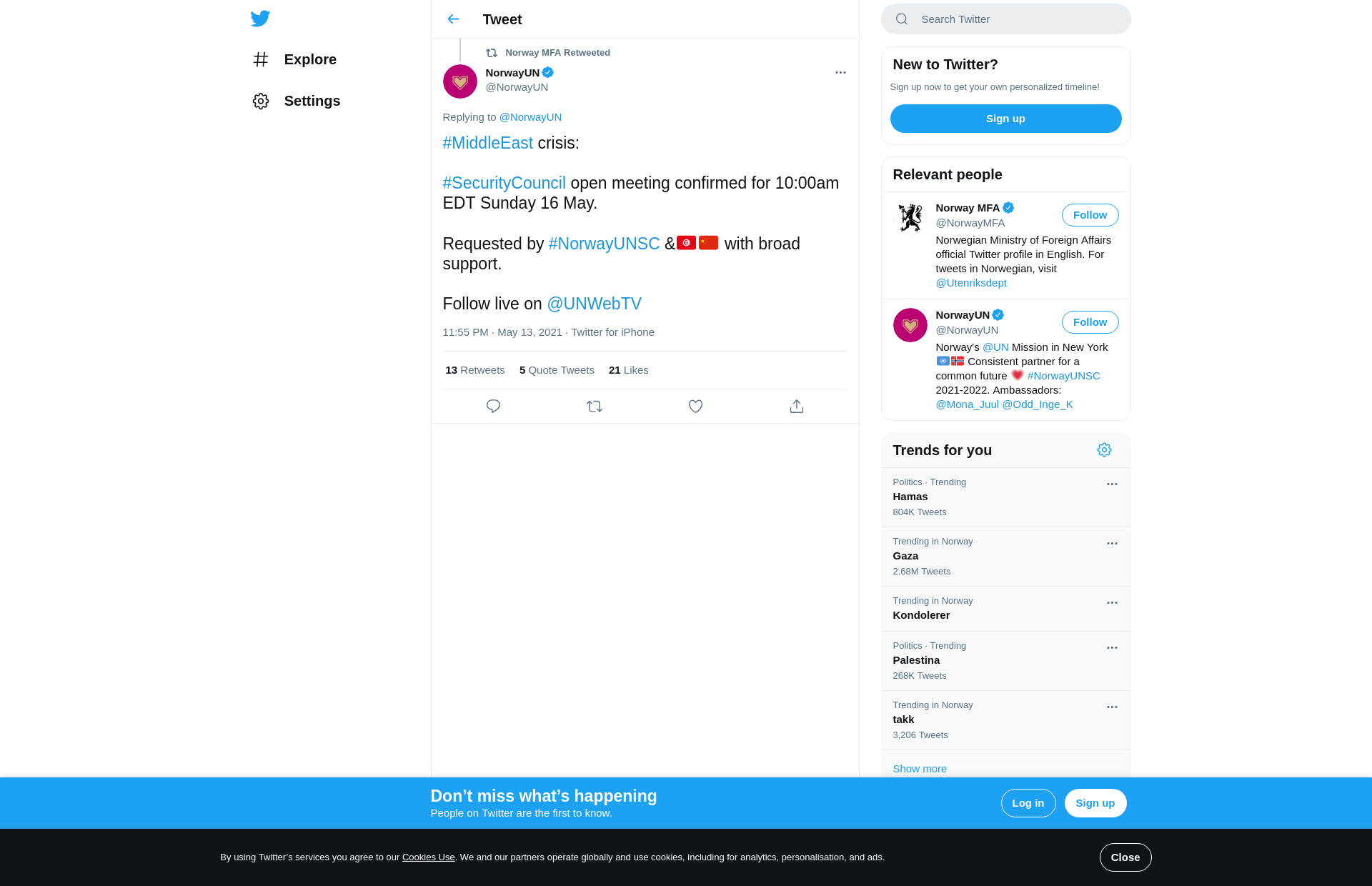 RT @NorwayUN: #MiddleEast crisis: #SecurityCouncil open meeting confirmed for 10:00am EDT Sunday 16 May. Requested by #NorwayUNSC &🇹🇳🇨🇳 w…