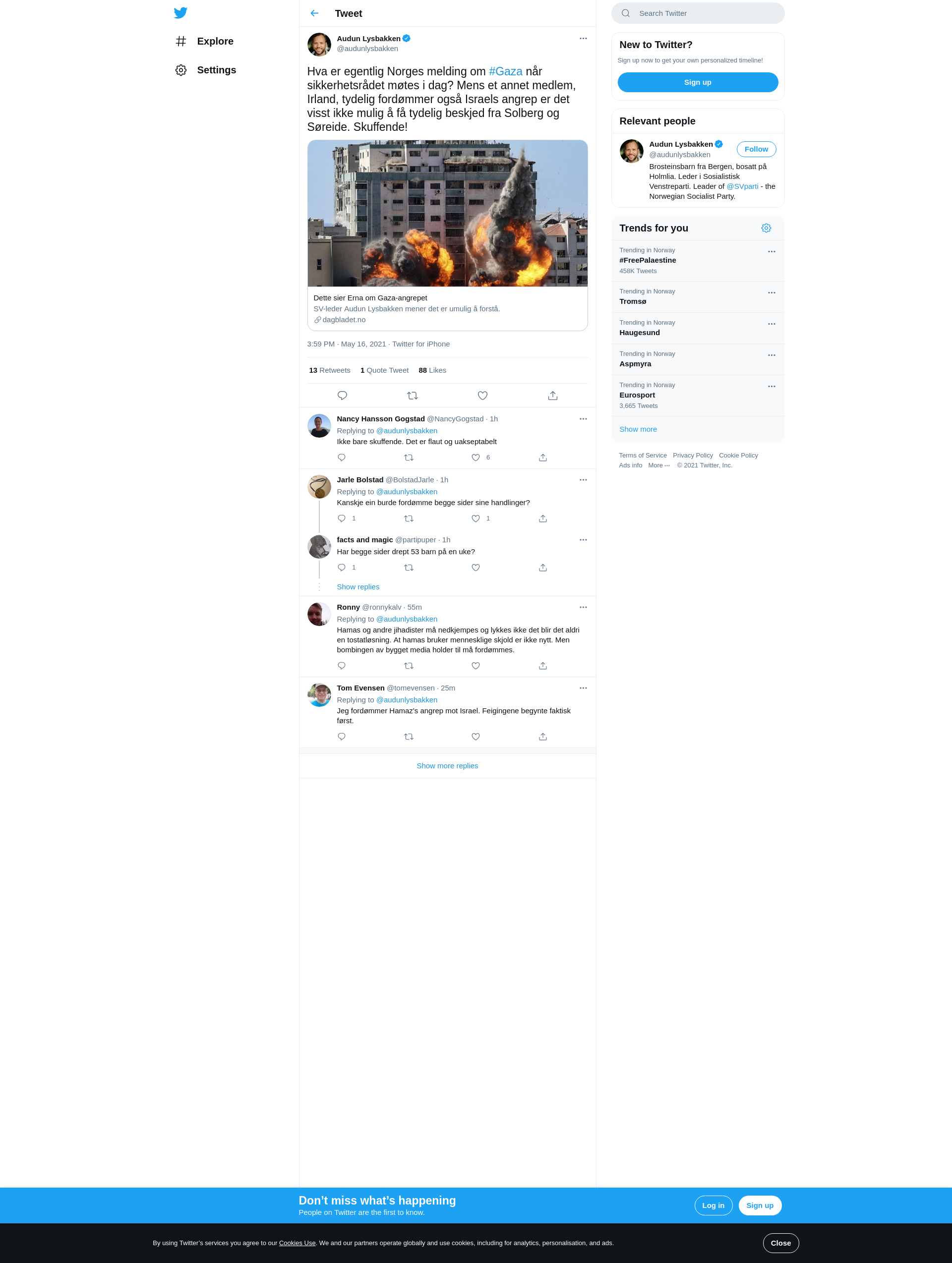 Hva er egentlig Norges melding om #Gaza når sikkerhetsrådet møtes i dag? Mens et annet medlem, Irland, tydelig fordømmer også Israels angrep er det visst ikke mulig å få tydelig beskjed fra Solberg og Søreide. Skuffende! https://t.co/m396oyjFEH