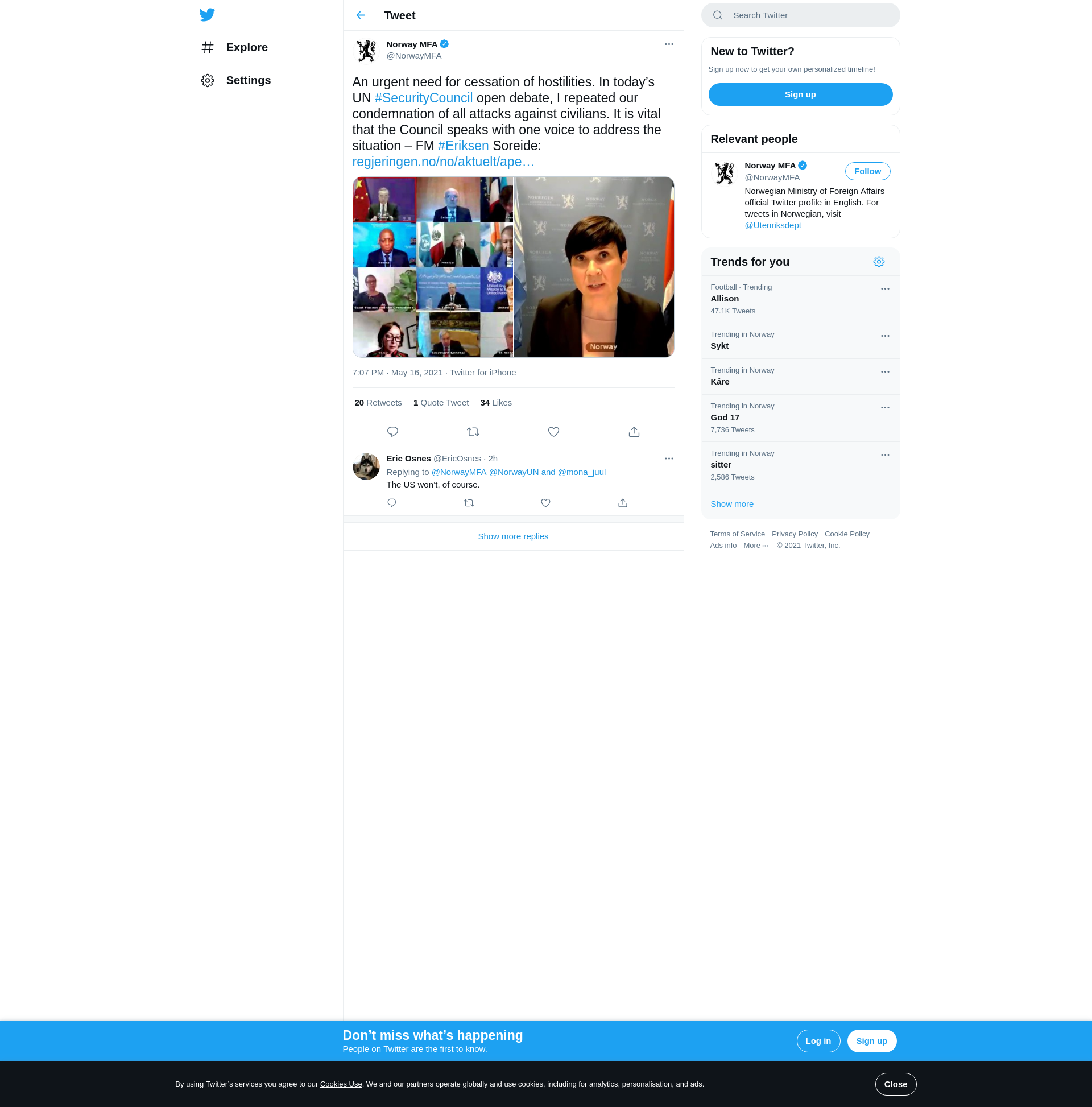 "Thank you to both Secretary General Guterres and Special Coordinator Wennesland for your briefings. Since the Council last met on Wednesday, May 12, the situation on the ground has deteriorated significantly. As the Secretary General has elaborated on...