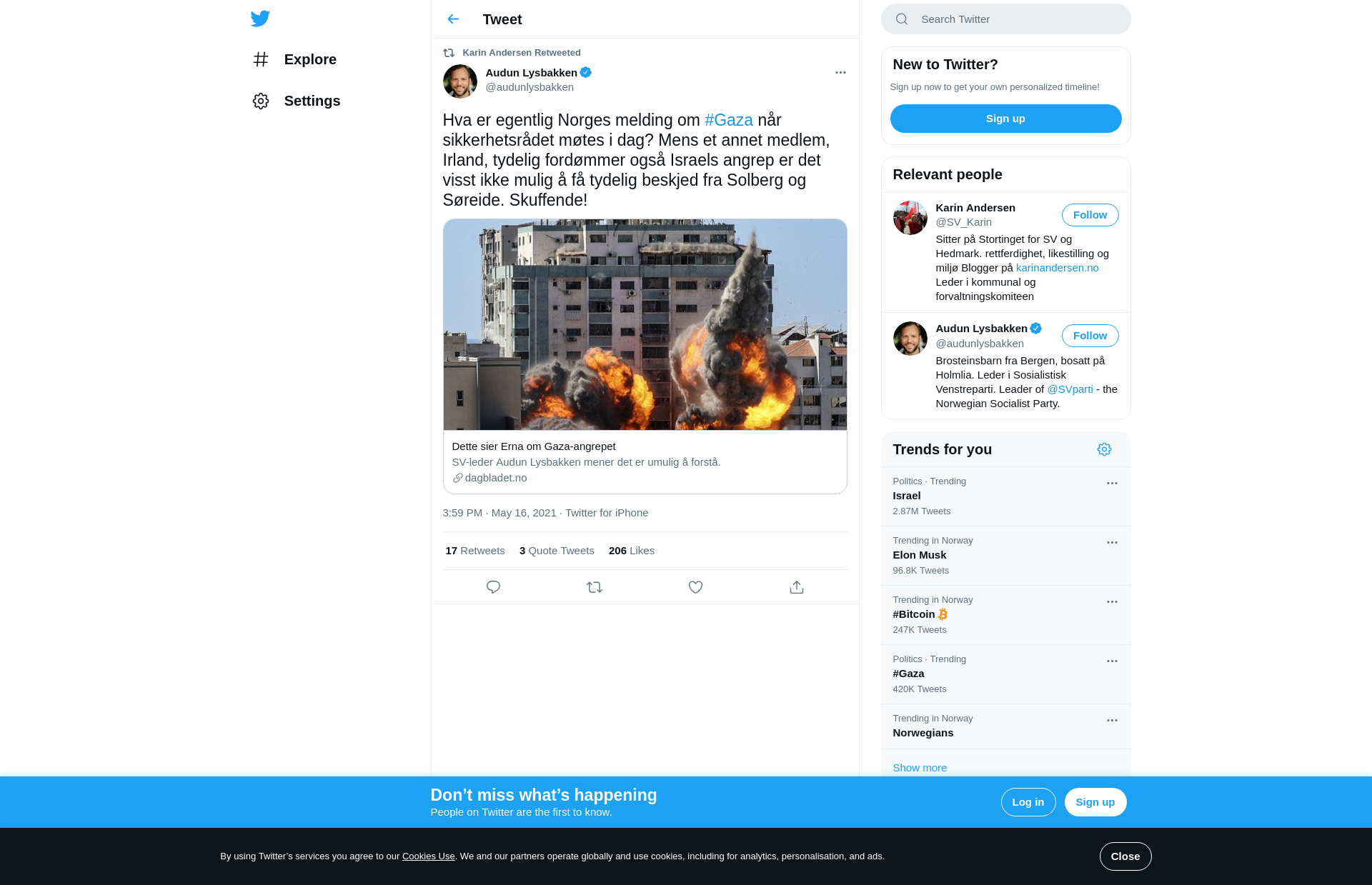 RT @audunlysbakken: Hva er egentlig Norges melding om #Gaza når sikkerhetsrådet møtes i dag? Mens et annet medlem, Irland, tydelig fordømmer også Israels angrep er det visst ikke mulig å få tydelig beskjed fra Solberg og Søreide. Skuffende! https://t.co/m396oyjFEH