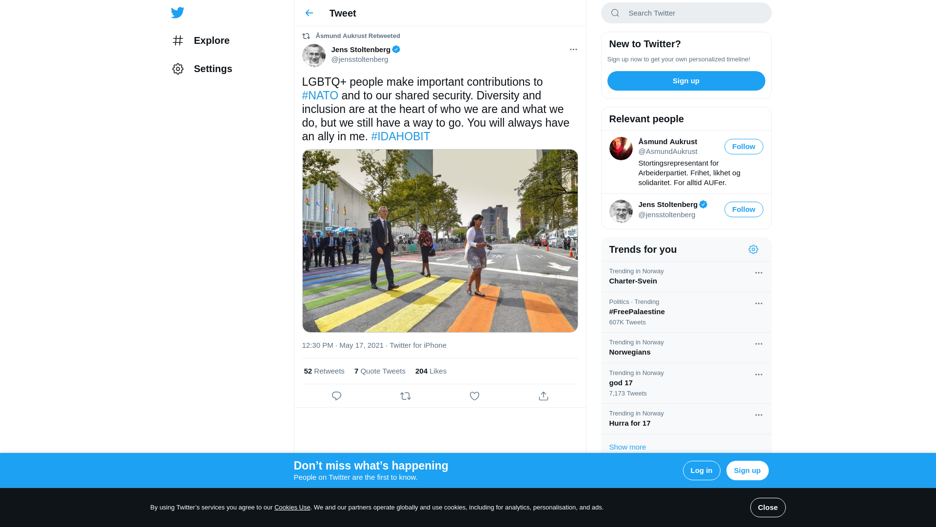 RT @jensstoltenberg: LGBTQ+ people make important contributions to #NATO and to our shared security. Diversity and inclusion are at the heart of who we are and what we do, but we still have a way to go. You will always have an ally in me. #IDAHOBIT https://t.co/NcwKRfSstd
