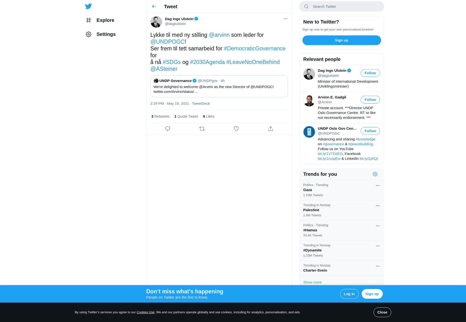 Lykke til med ny stilling @arvinn som leder for @UNDPOGC! Ser frem til tett samarbeid for #DemocraticGovernance for å nå #SDGs og #2030Agenda #LeaveNoOneBehind @ASteiner